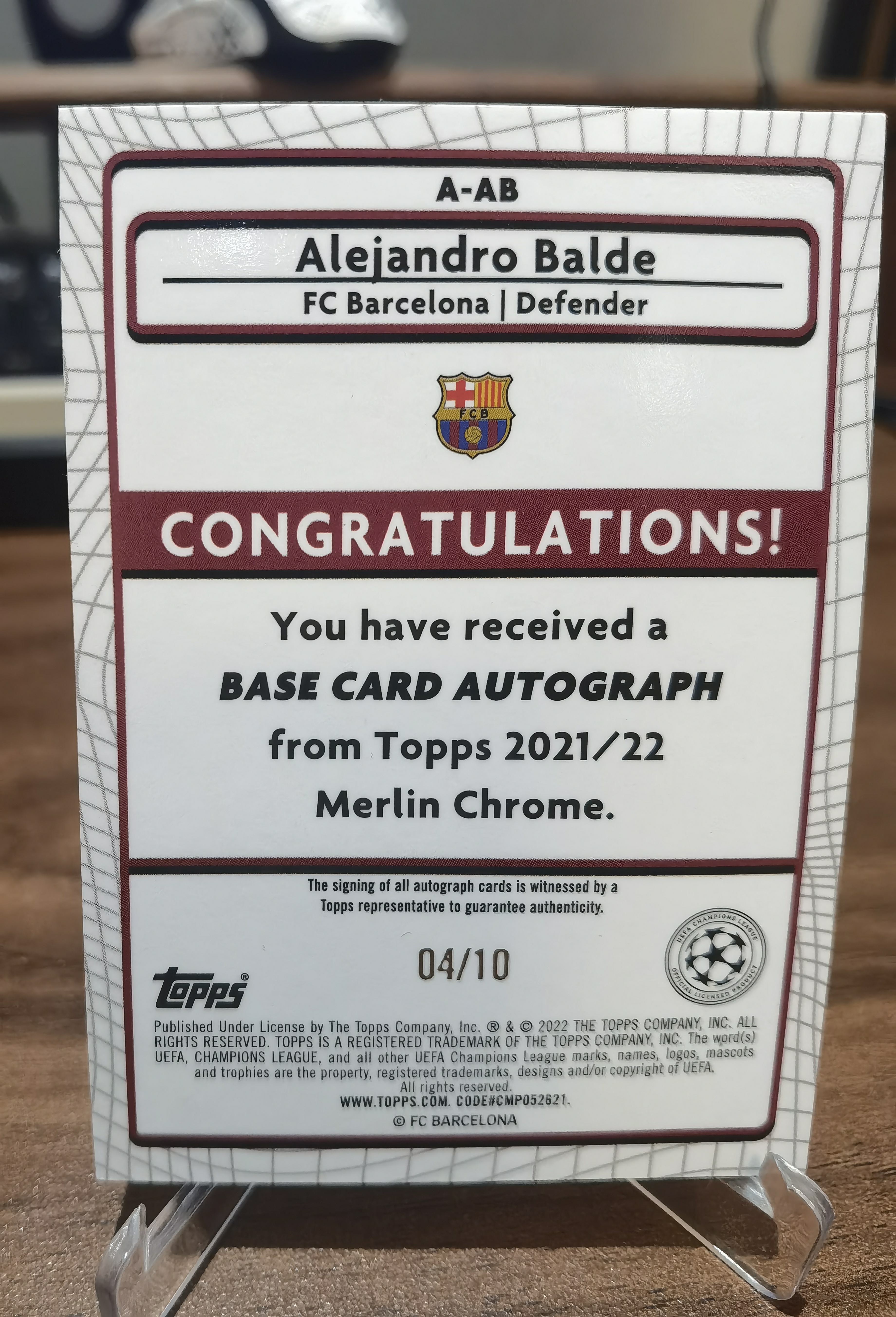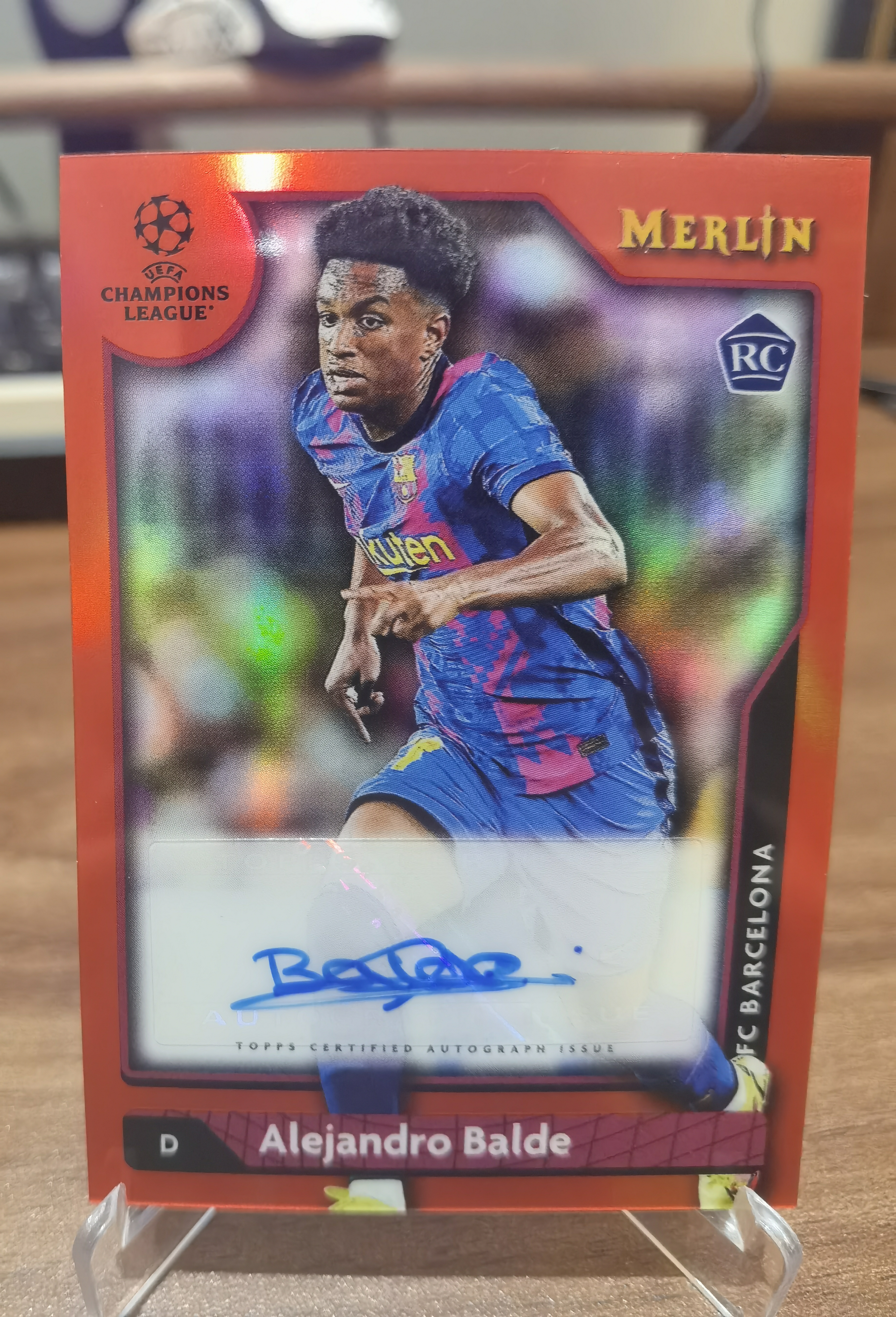 2021-22 Topps Merlin chrome Alejandro Balde 梅林 巴尔德 红折签字 新秀RC 4/10编 超低编 巴萨主力左边后卫 前途无量 20岁 亚马尔队友