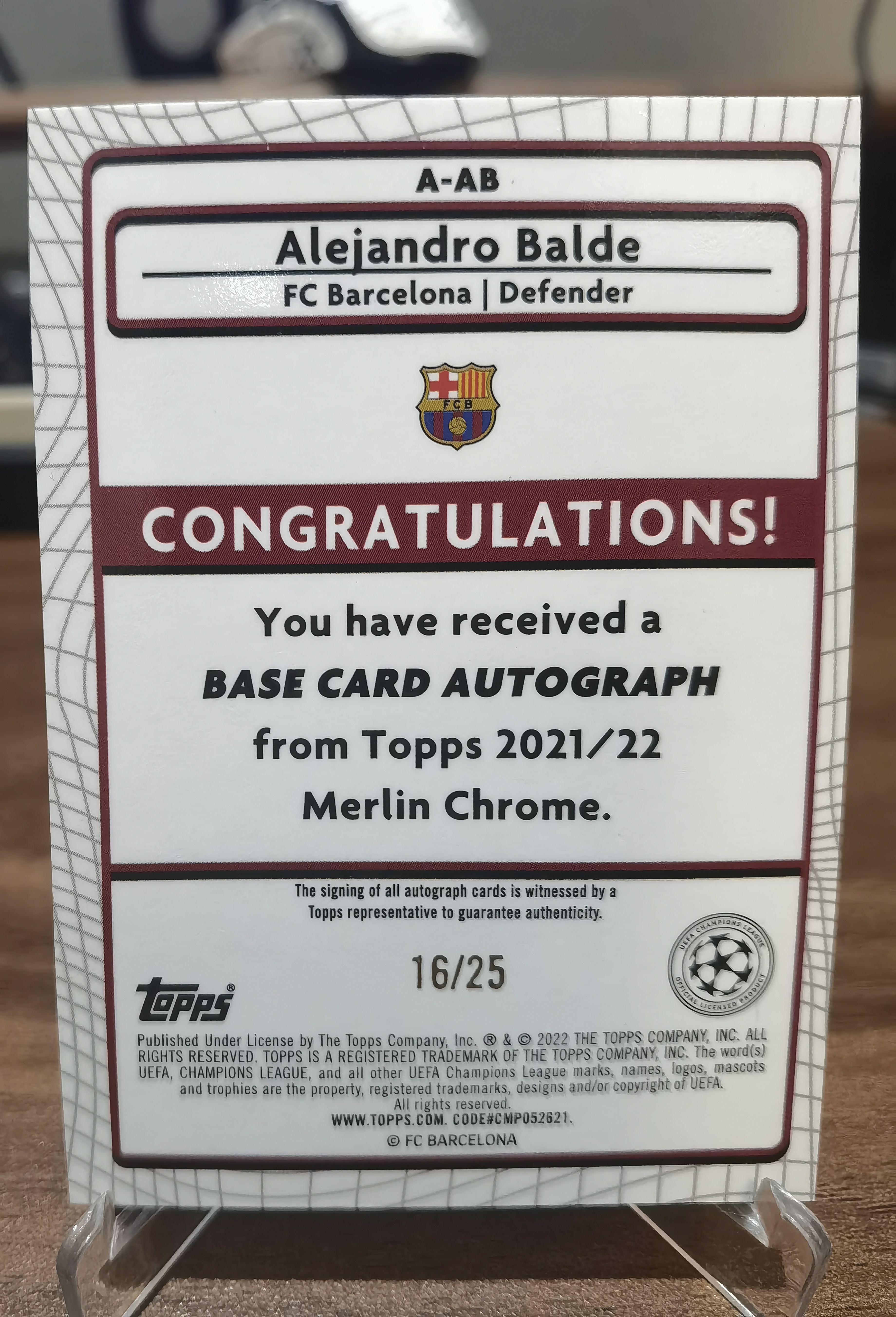 2021-22 Topps Merlin chrome Alejandro Balde 梅林 巴尔德 橙折签字 新秀RC 16/25编 超低编 巴萨主力左边后卫 前途无量 20岁 亚马尔队友