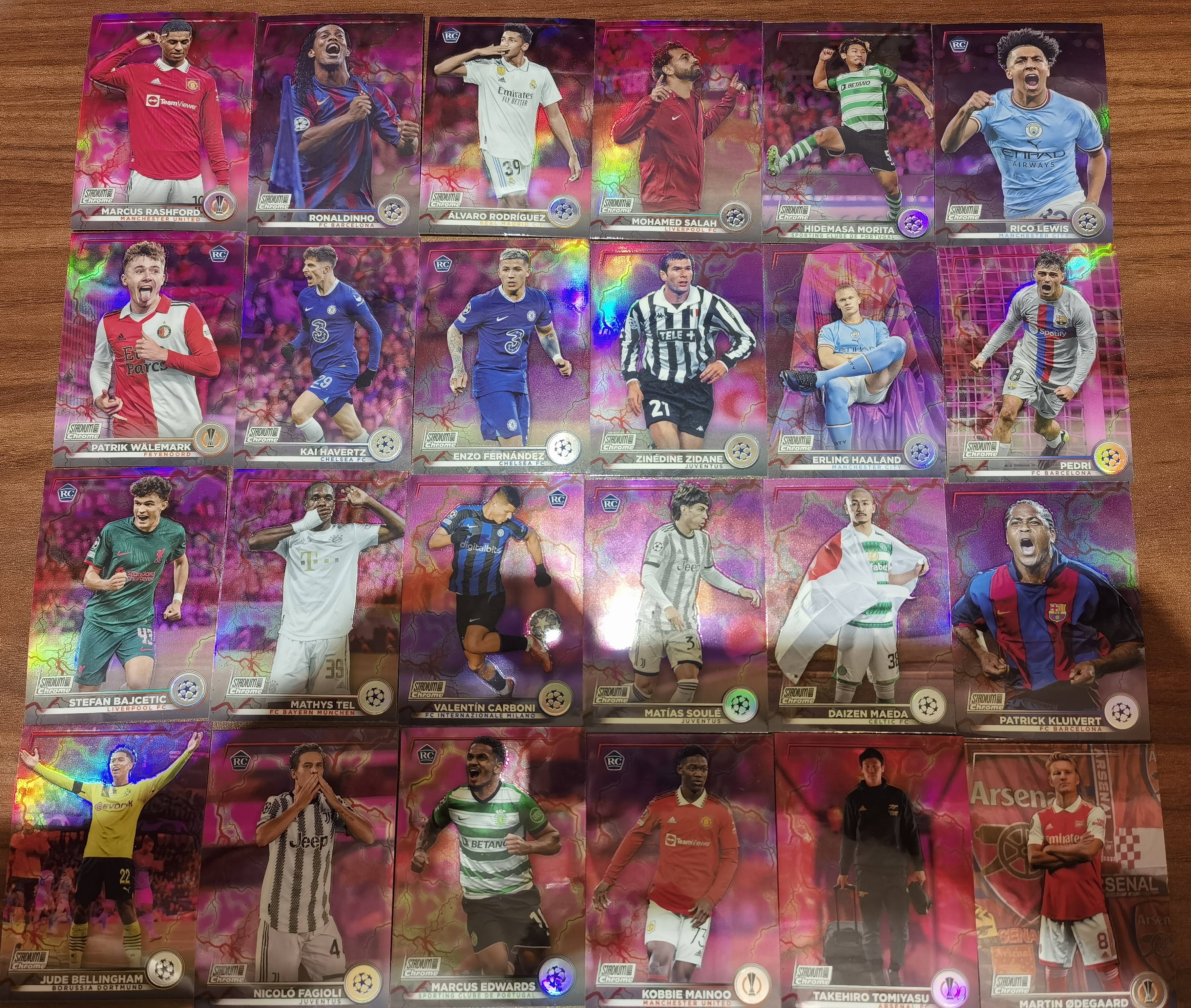 2022-23 Topps Chrome 哈兰德 RC 克鲁伊维特 拉什福德 罗纳尔迪尼奥 萨拉赫 恩佐 佩德里 贝林厄姆 梅努 厄德高 齐达内 粉闪电 24张 打包
