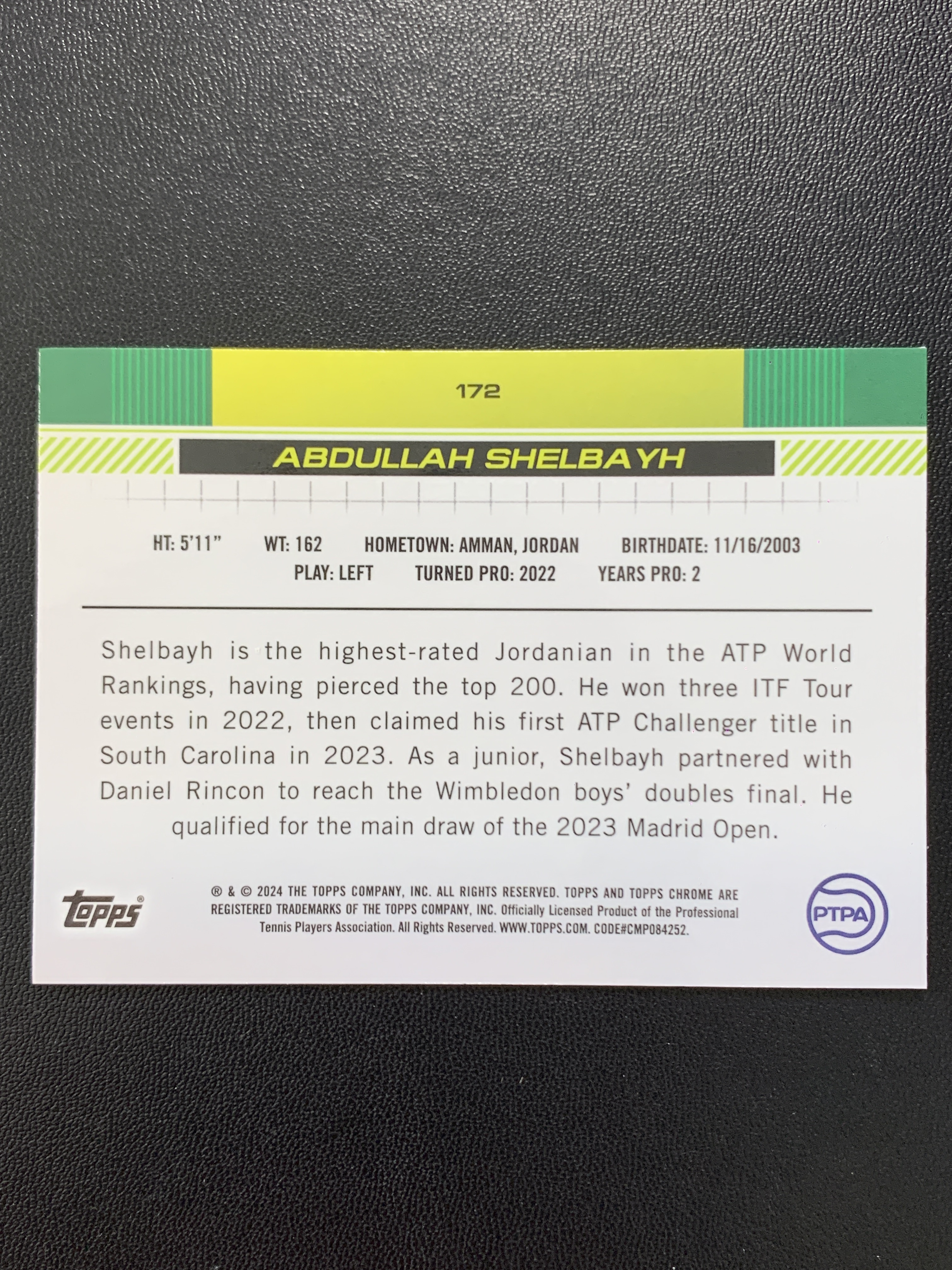 2024 Topps Chrome 网球 Abdullah Shelbayh 阿卜杜拉 谢尔拜 紫折 499编 新秀 RC 折射 专收必备