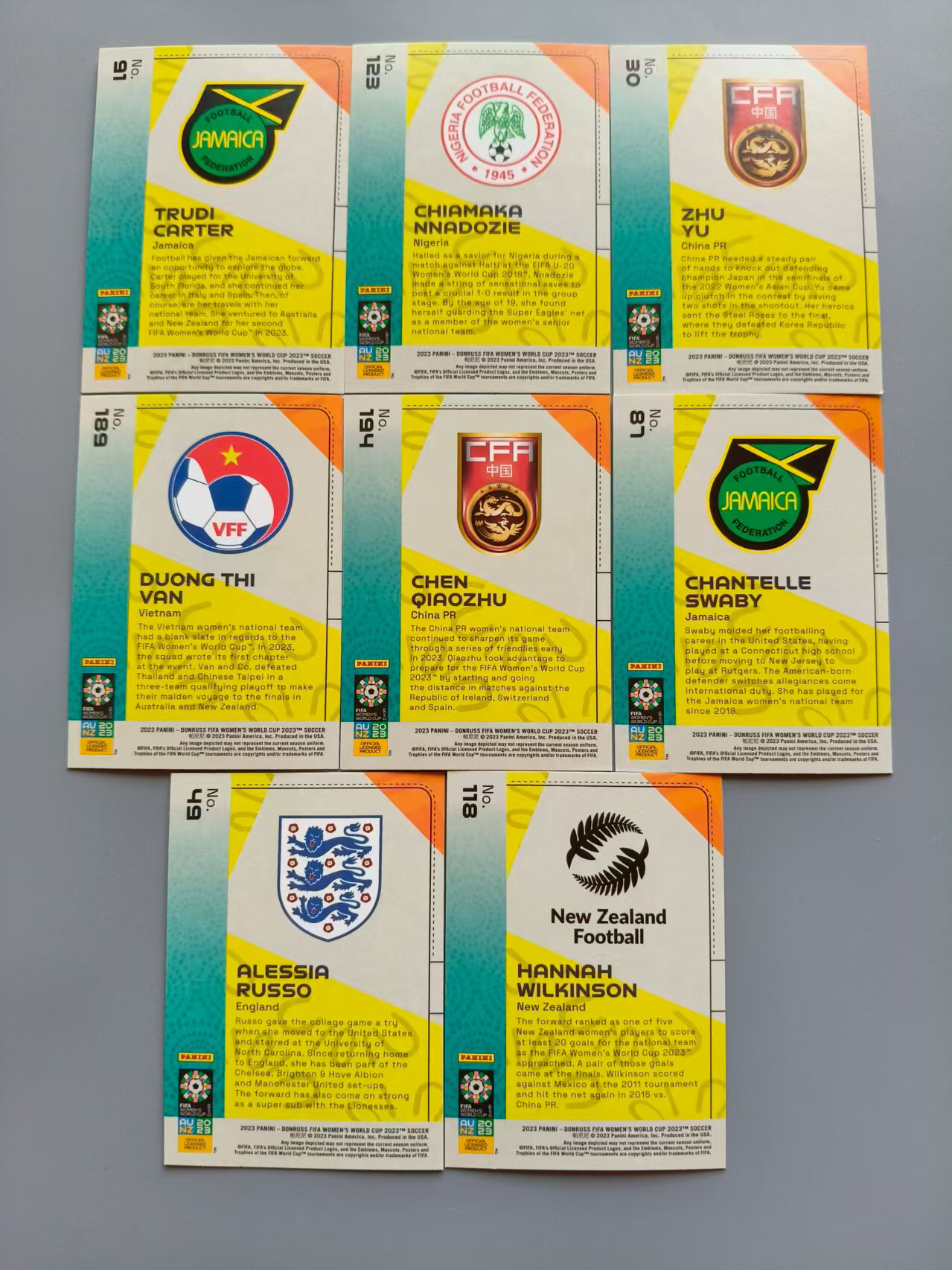 2023-24 Panini Donruss 陈巧珠 帕尼尼杜蕾斯 女足世界杯 中国 陈巧珠 朱云 英格兰 鲁斯索 卡尔特尔 恩娜多泽 打包 lot