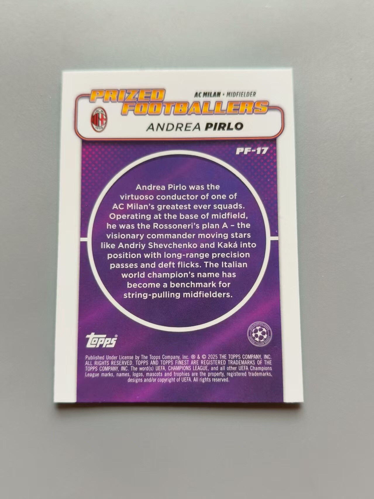 2024-25 Topps Finest Andrea Pirlo topps finest 欧冠 AC米兰 皮尔洛 传奇 守护 盾牌 银折 折射