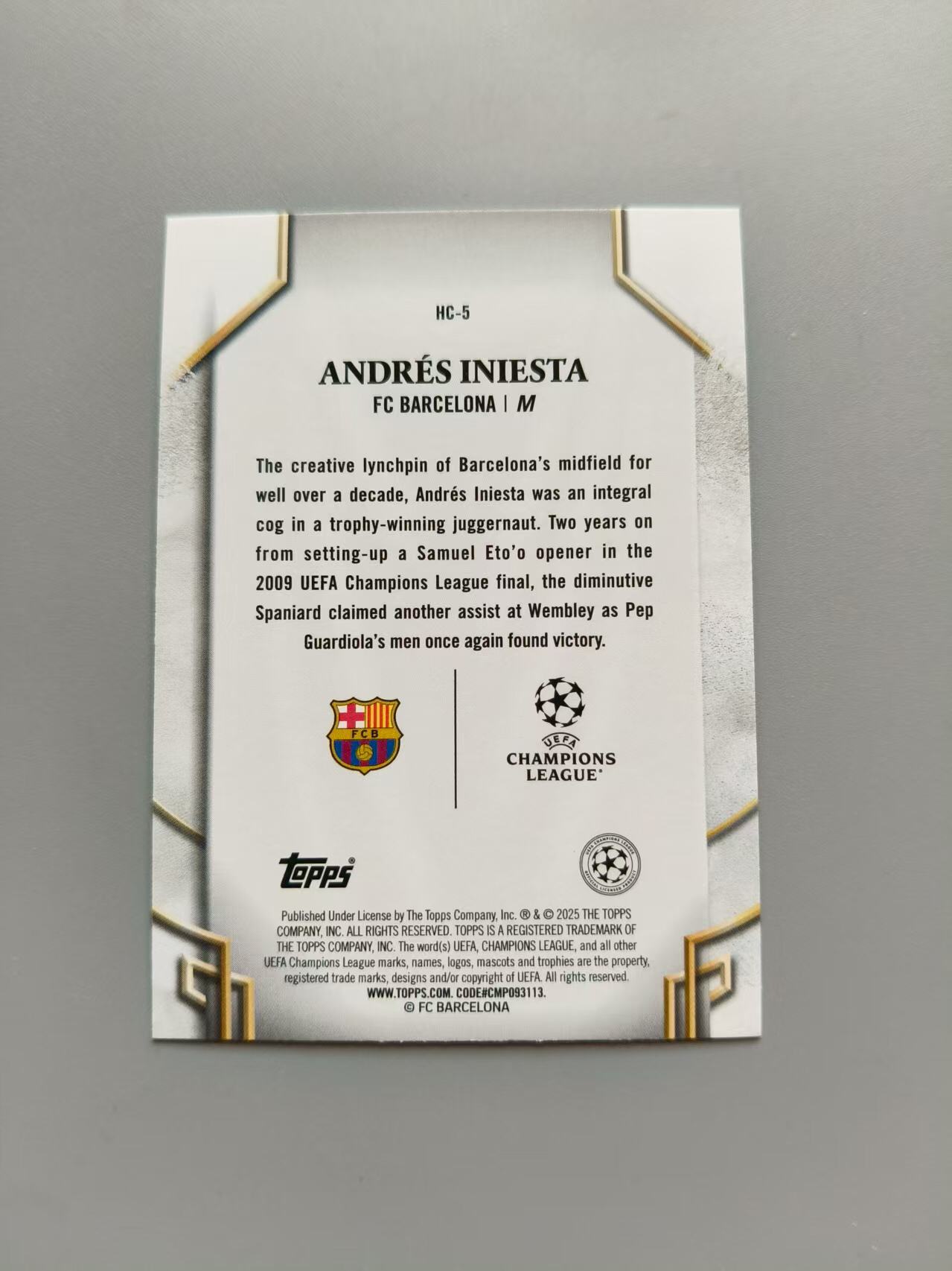 2024-25 Topps ucc Andres Iniesta topps ucc 欧战 巴萨 伊涅斯塔 传奇 荣誉名人堂 特卡
