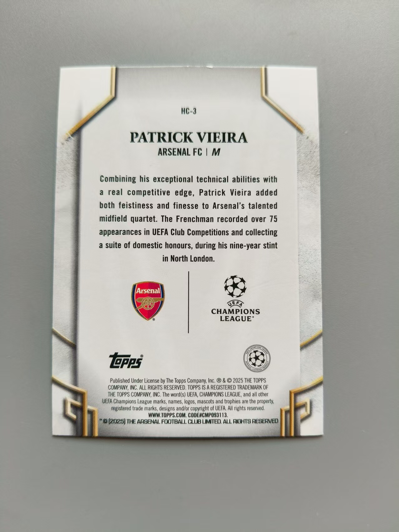 2024-25 Topps ucc Patrick Vieira topps ucc 欧战 阿森纳 维埃拉 传奇 荣誉名人堂 特卡