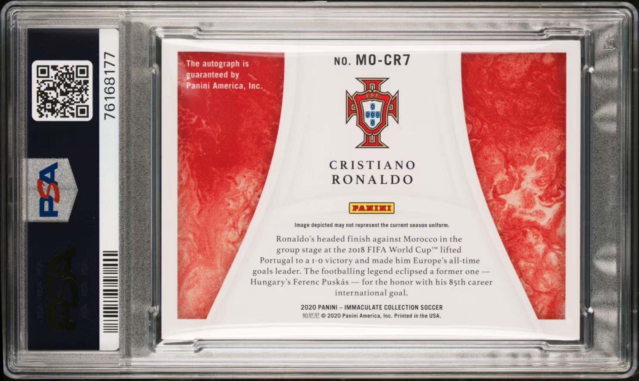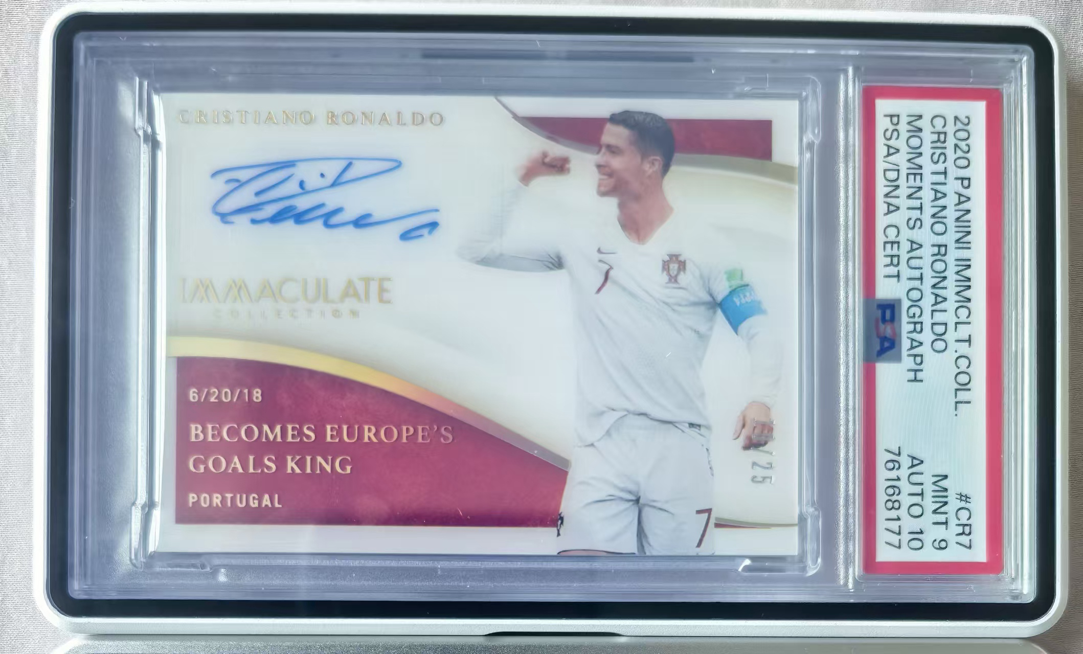 2020 Panini Immaculate Cristiano Ronaldo C罗 葡萄牙 欧洲射手王 登基时刻 GOALS KING 10/25编 单一无平行 签字 PSA 9/10 POP1