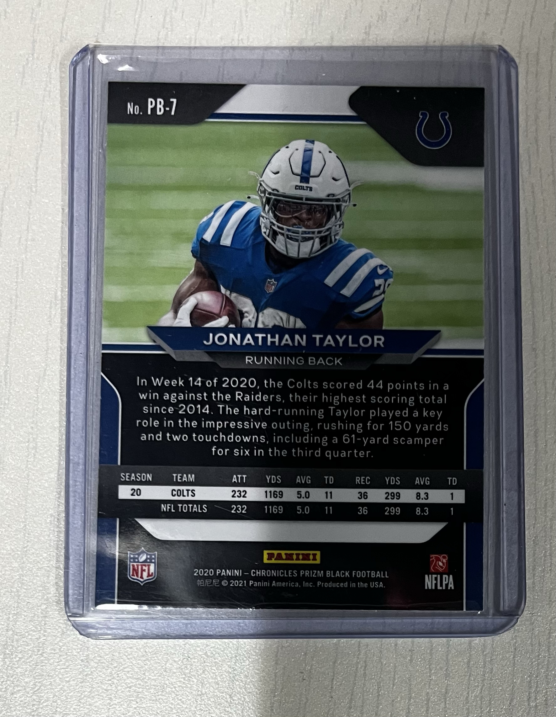 2020 Panini Chronicles Jonathan Taylor RC 20届超跑 乔纳森泰勒rc大比例 prizmblack,路面天神下凡小马进攻大爹,值得收藏投资