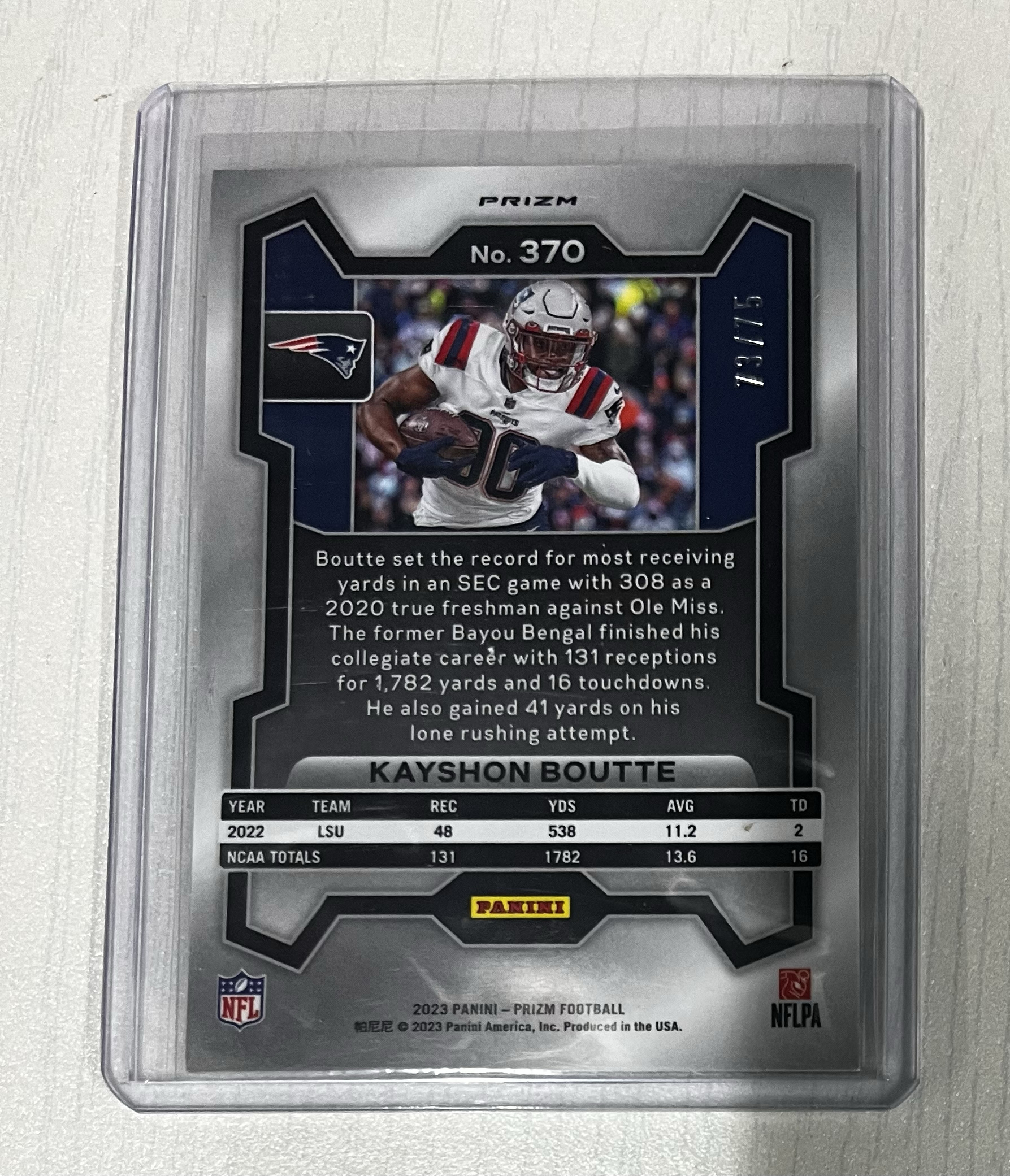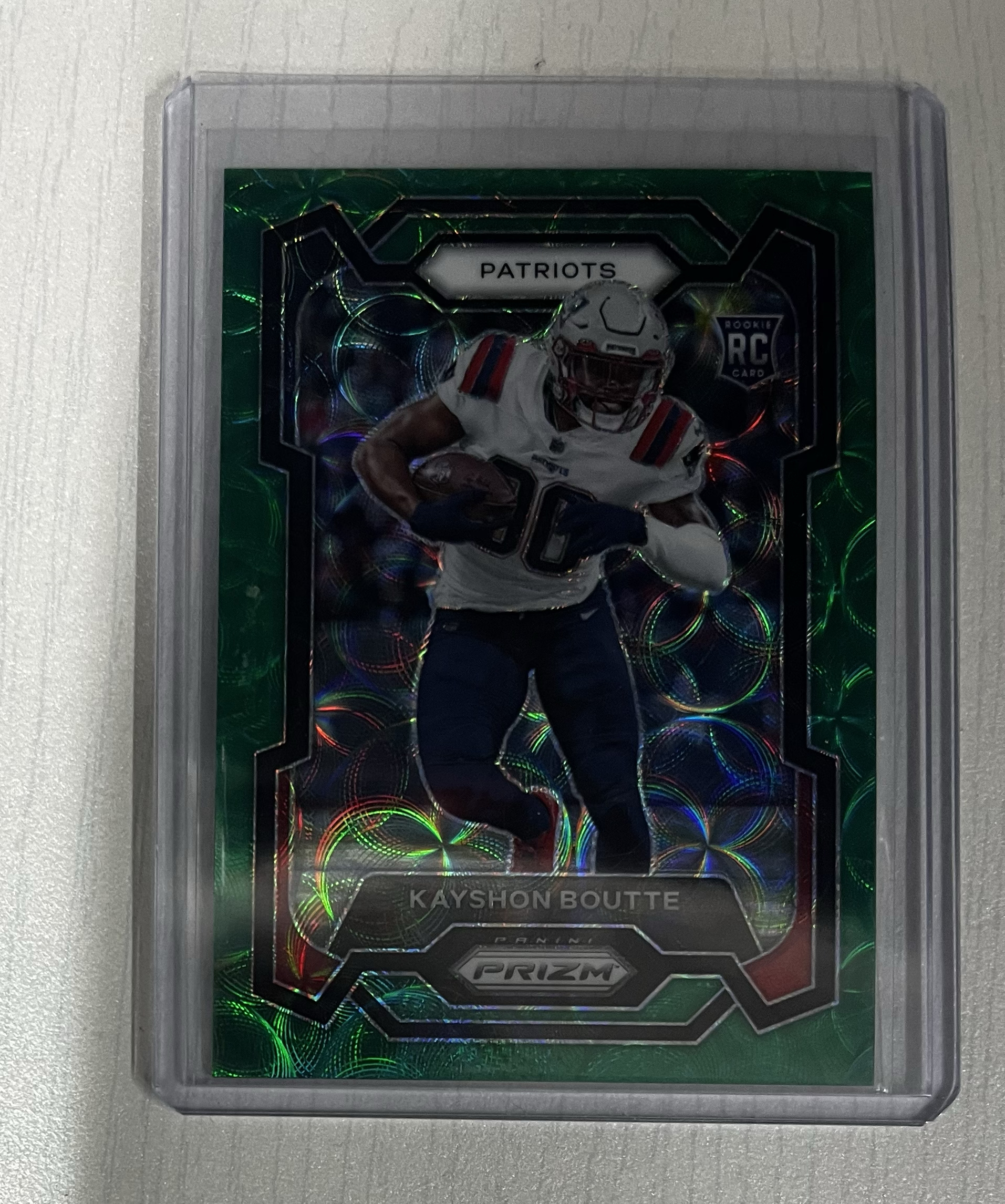2023 Panini Prizm Kayshon Boutte RC 新英格兰爱国者 天才槽外接,Boutte RC75编绿圈圈,Maye第一传球点,接球稳定,卡量稀少,值得收藏投资