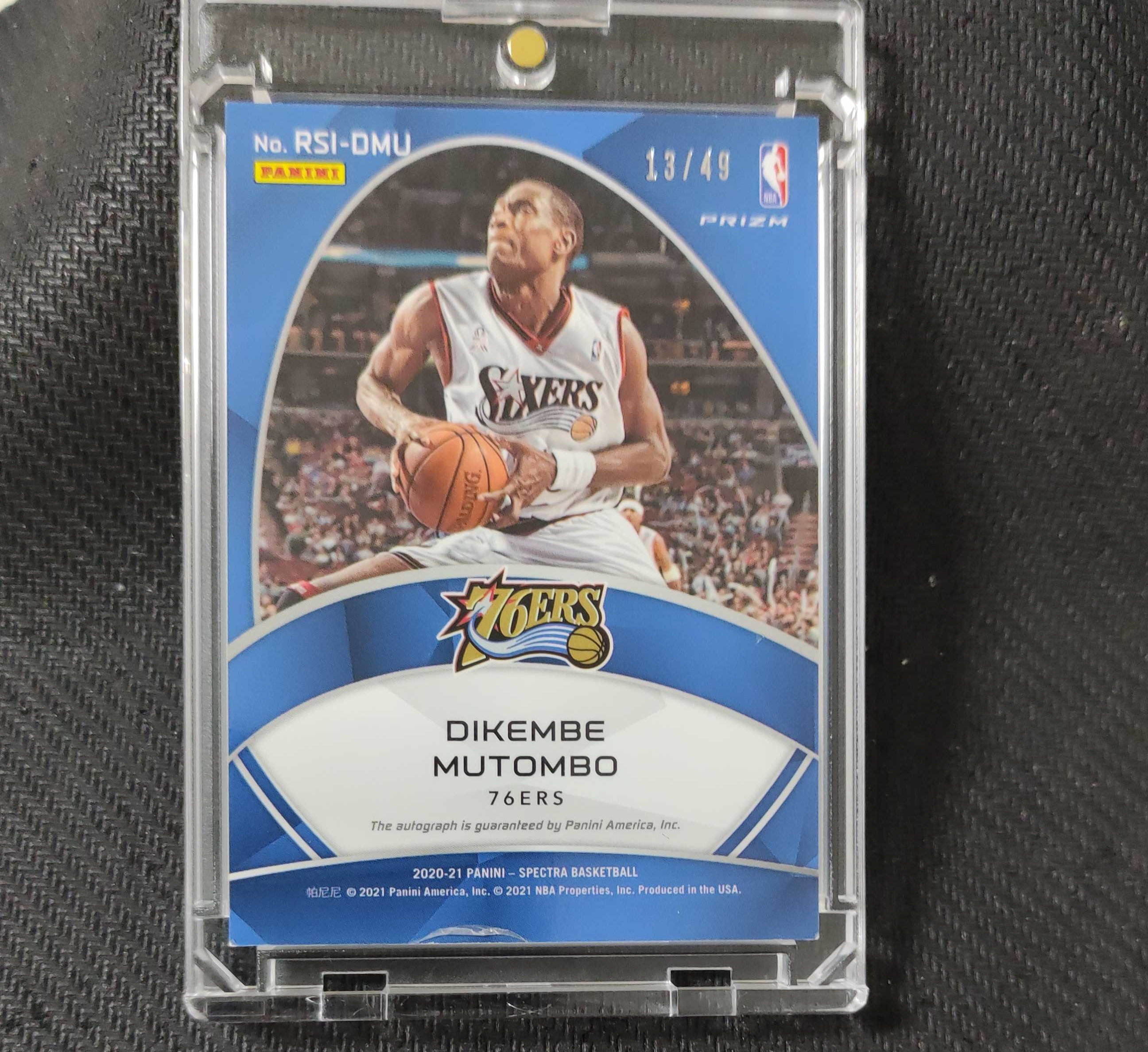 2020-21 Panini Spectra Dikembe Mutombo 迪肯贝 穆托姆博 签字卡 13/49编 银折 折射 穆大叔 76人队 光谱系列 收藏必备 可累计 瑕疵如图