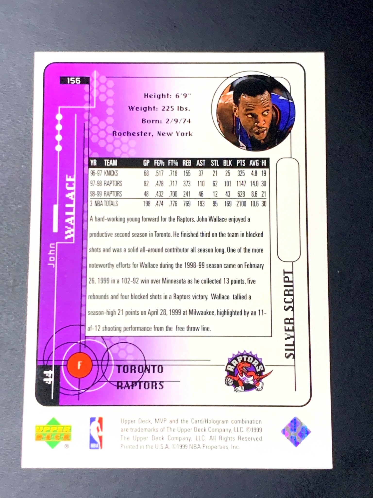 1999-00 Upper Deck MVP John Wallace MVP系列 猛龙队 约翰 华莱士 银签字卡 印签卡 经典老特卡 品相通品 凑套必备