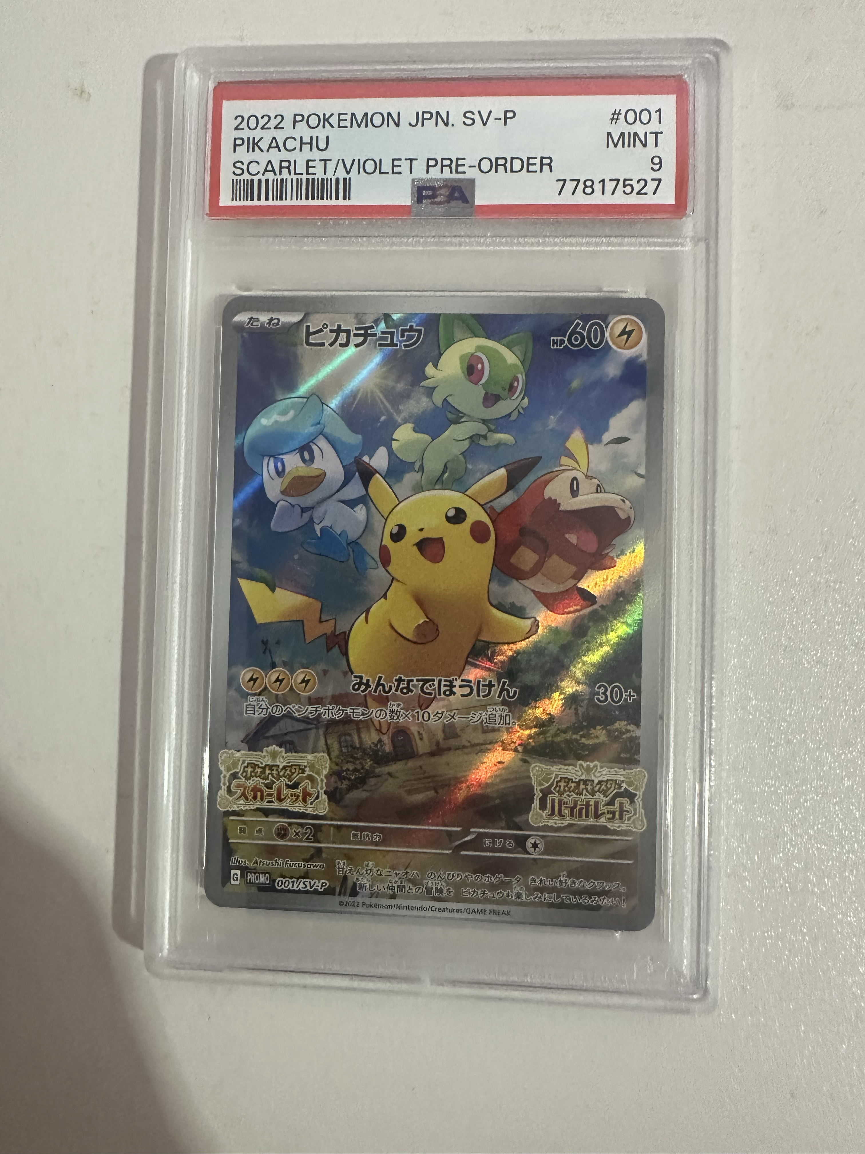 2022 Pokemon TCG PROMO 宝可梦 朱紫 皮卡丘 朱紫皮 001/SV-P 日版 全图闪 PSA 9 卡品如图 ja