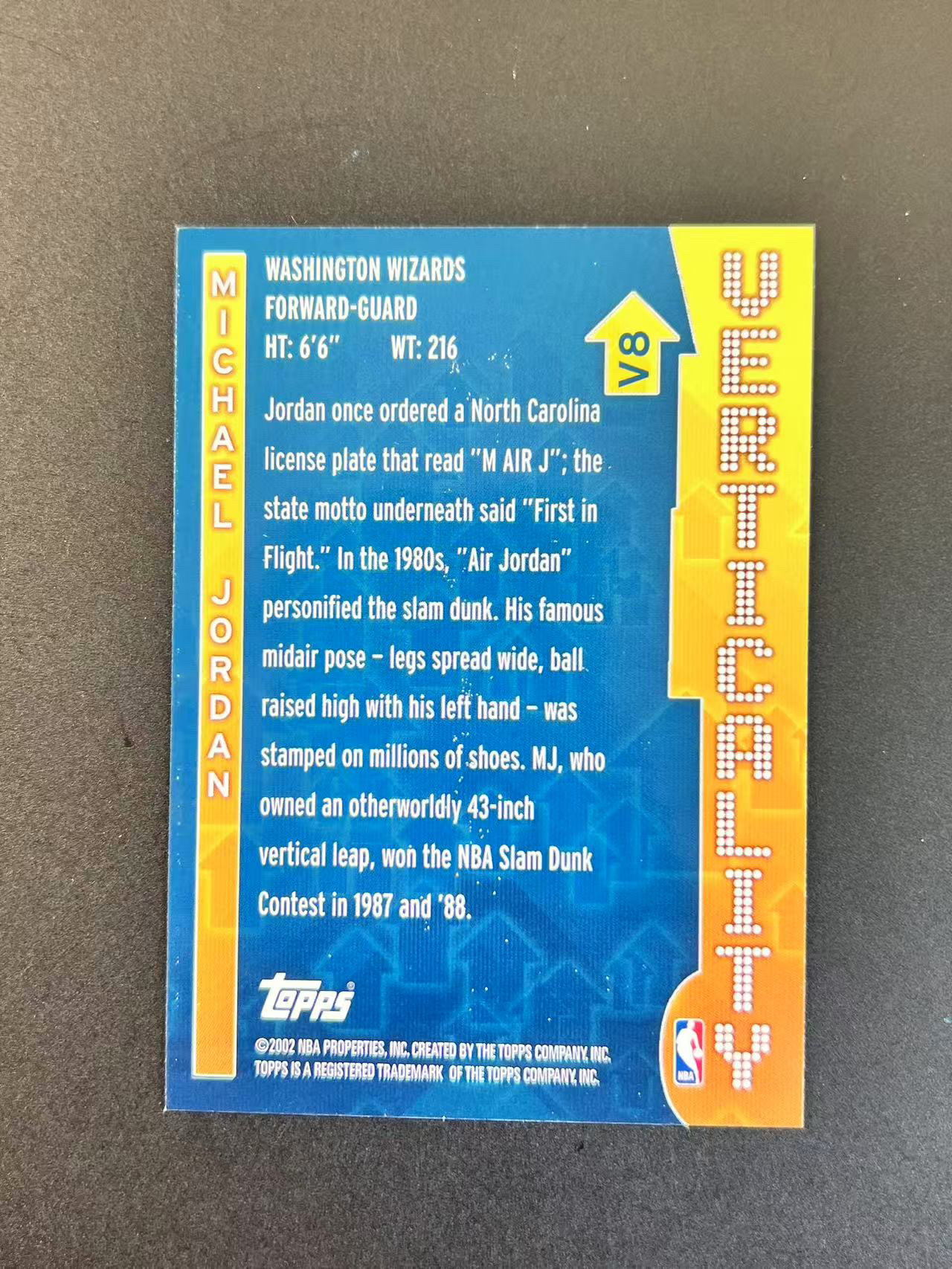 2002 Topps Michael Jordan 【卡老鼠代卖】goat 篮球之神 迈克尔 乔丹  Verticality  稀有老卡 边角微白  ok哥 寄付