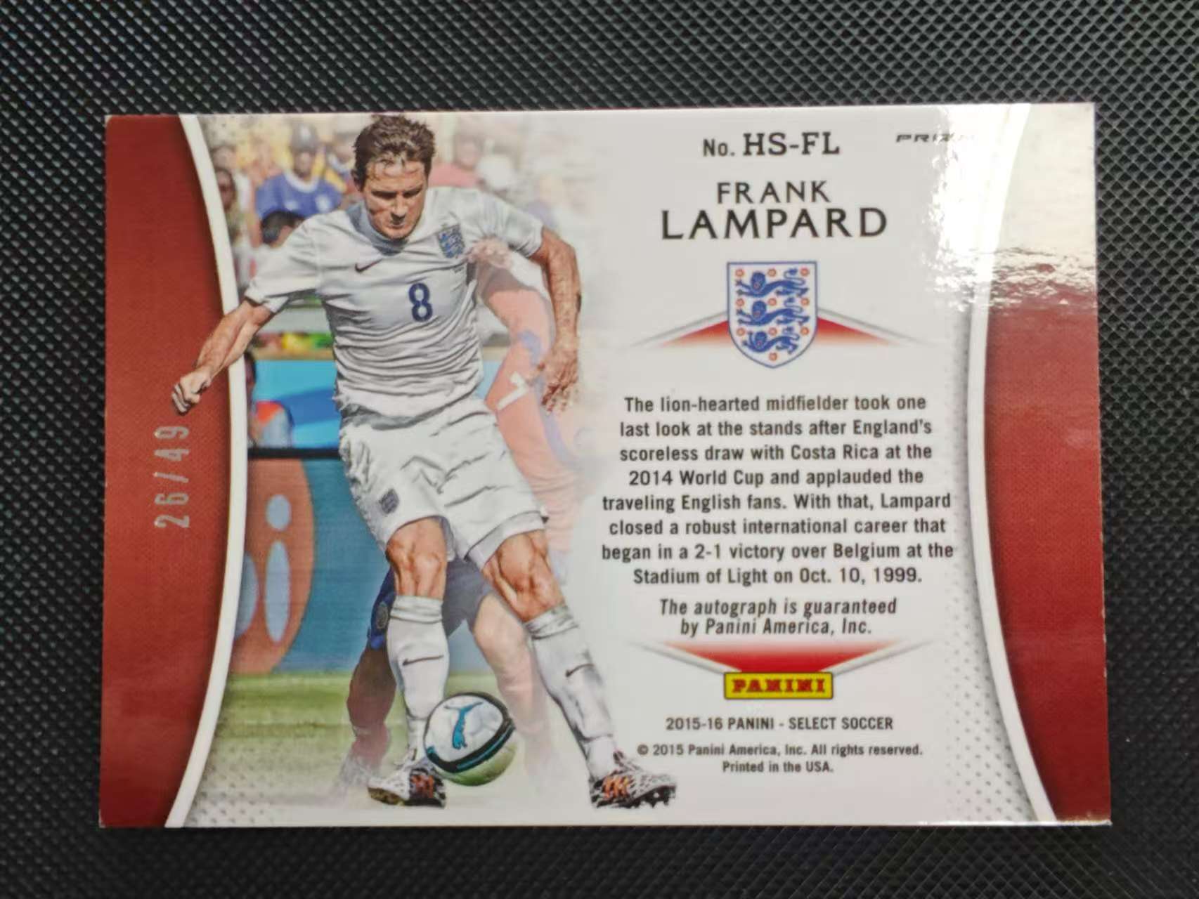 2015-16 Panini Select Frank Lampard 英格兰 切尔西 弗兰克 兰帕德 神灯 49编 签字 橙折 折射 base 特卡