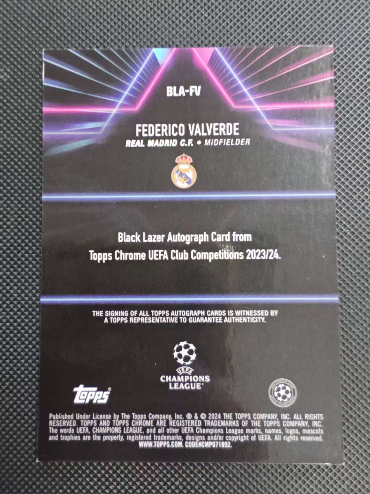 2023-24 Topps Chrome Federico Valverde 欧冠TC 皇马 巴尔韦德 签字 黑激光 黑镭射 折射 base 特卡 3