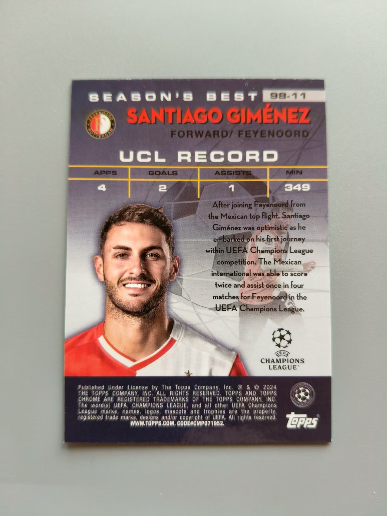 2023-24 Topps Chrome Santiago Giménez topps chrome 欧冠 费耶诺德 圣地亚哥 希门尼斯 明星射手 折射 AC米兰