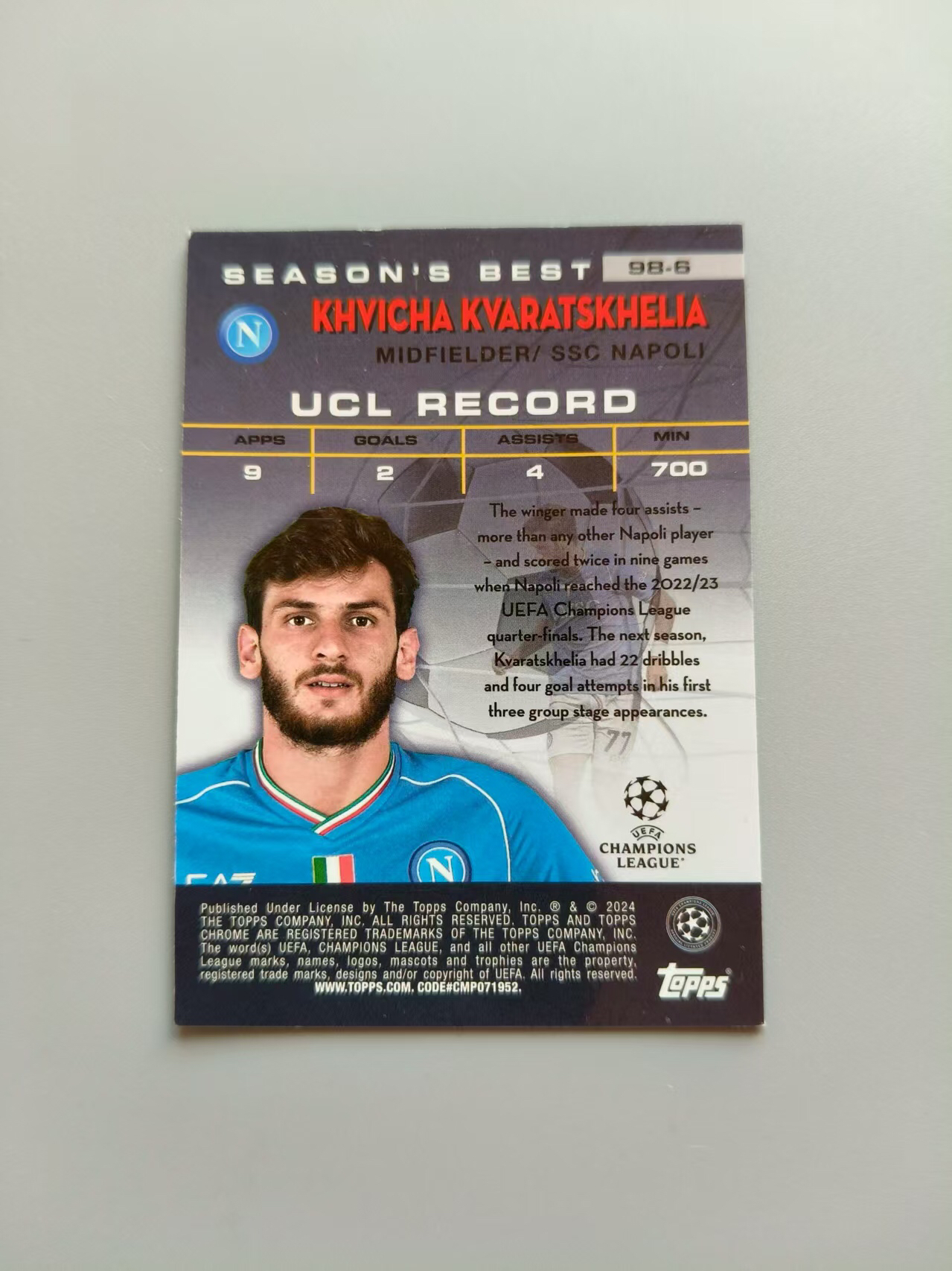 2023-24 Topps Chrome kvaratskhelia topps chrome 欧冠 那不勒斯 k77 克瓦拉茨赫利亚 明星射手 折射