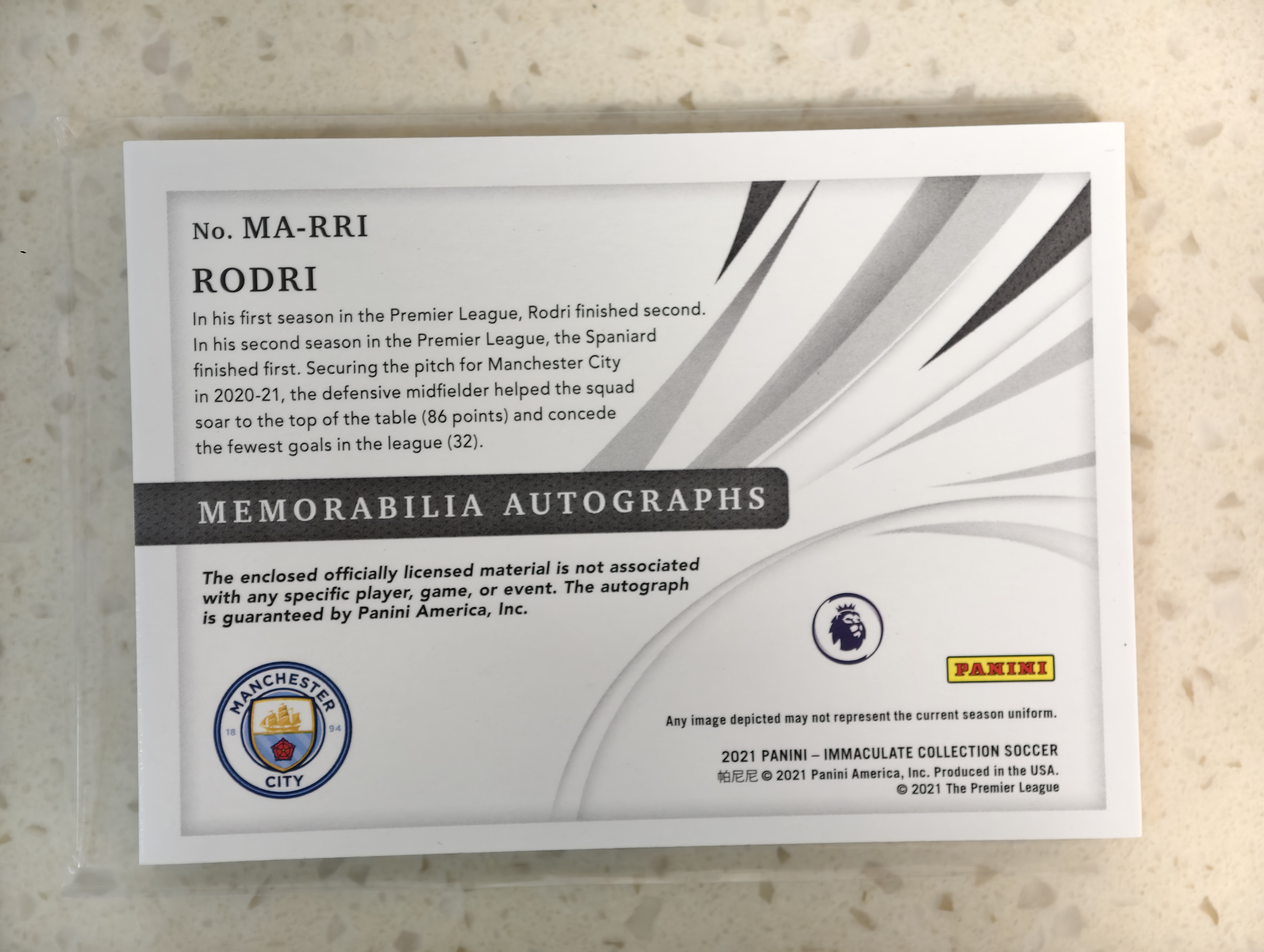 2021 Panini Immaculate Rodri 西班牙 曼城 中场核心 罗德里 签字 签名 单窗物料 球衣切割 镜面 2024 年金球奖!89/99编 收藏必备