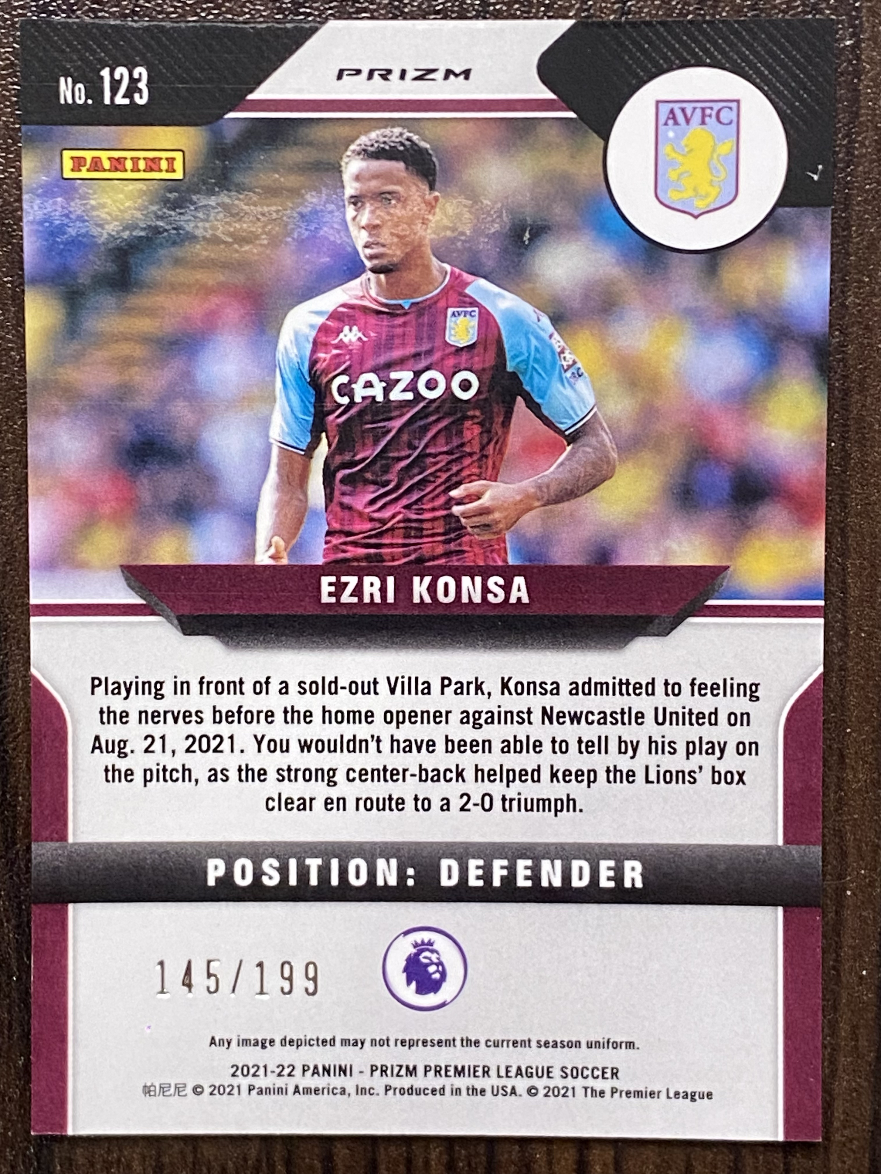 2021-22 Panini Prizm Ezri Konsa 英超 PZ 孔萨 阿斯顿维拉 199编 蓝折 脉冲折 实卡美丽 专收必备 (默认发顺丰)