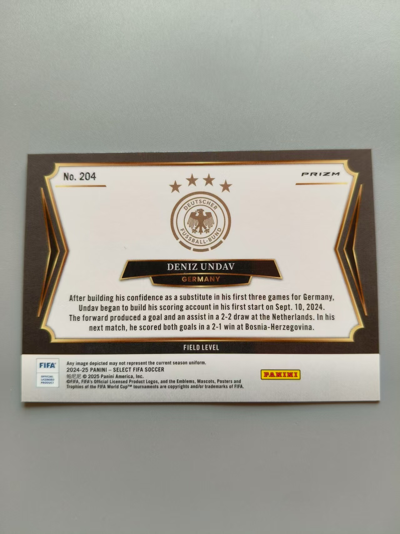 2024-25 Panini Select undav 帕尼尼 FIFA select 德国 昂达夫 银折 折射 横版 prizm