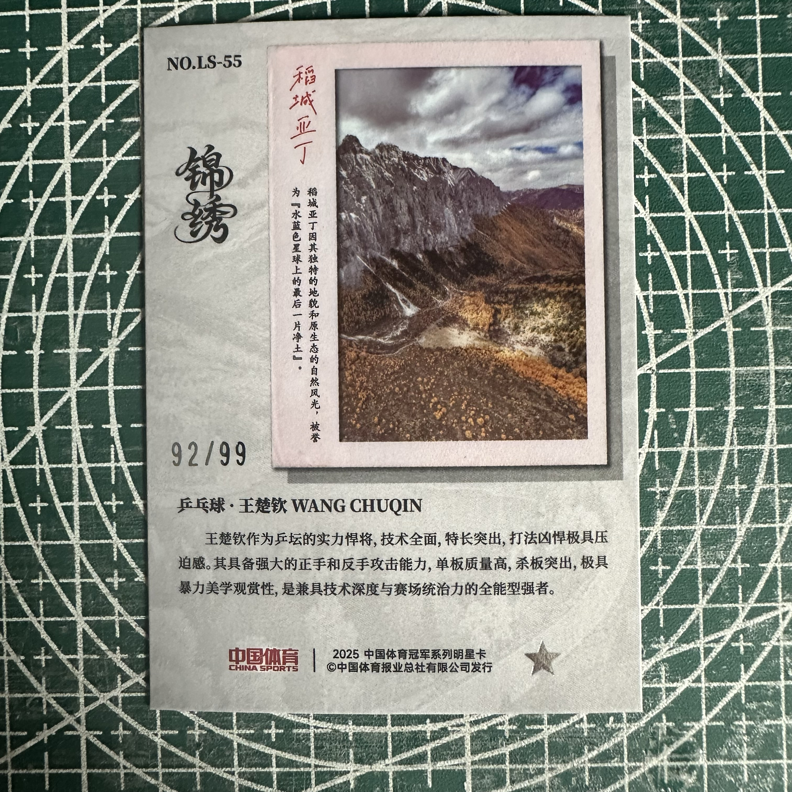 2025 奇卡 QICA 中国体育 凌云 王楚钦 乒乓球 莎头组合 王楚钦 99编 蓝折 折射 孙颖莎队友 卡品如图