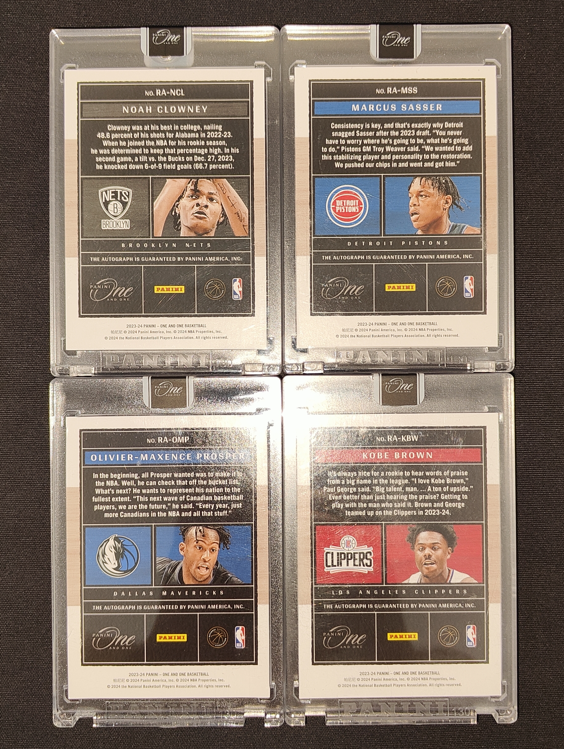 中标后请于3日内付款,付款后36小时内发货(默认地址发货,如需更改地址请付款前修改),中标后三日不付款,站内信不回复说明,一律按弃标处理,关闭订单,弃标商品将重新上架。不累计,所有卡片都会赠送卡具,不会额外收费,包装专业(气泡袋硬纸盒),快递一律顺丰到付(默认陆运,如需空运请留言),收到检查无误请及时确认,如果对图示有异议,请从收到快递开始拍摄完整开箱视频,若有问题以完整开箱视频为凭证进行处理,不接受截图拍照形式,谢谢!(Panini One and One 折射原封砖系列,个别卡片微瑕划痕印刷线胶印·厚卡微白边白角·镜面卡划痕均属通行品,原封砖卡砖瑕疵不算卡品瑕疵,有明显瑕疵的卡片会在图中标注⭕请仔细查看)