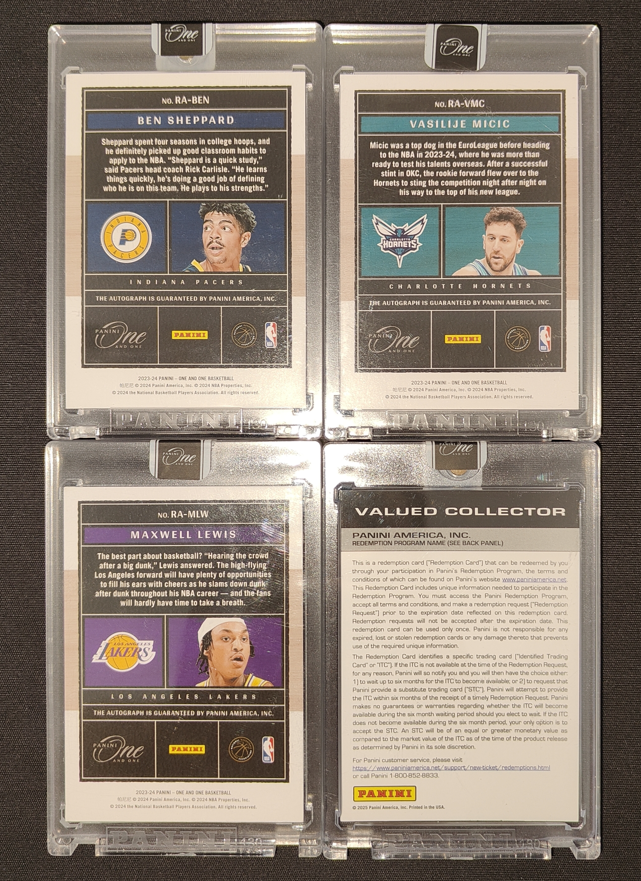 中标后请于3日内付款,付款后36小时内发货(默认地址发货,如需更改地址请付款前修改),中标后三日不付款,站内信不回复说明,一律按弃标处理,关闭订单,弃标商品将重新上架。不累计,所有卡片都会赠送卡具,不会额外收费,包装专业(气泡袋硬纸盒),快递一律顺丰到付(默认陆运,如需空运请留言),收到检查无误请及时确认,如果对图示有异议,请从收到快递开始拍摄完整开箱视频,若有问题以完整开箱视频为凭证进行处理,不接受截图拍照形式,谢谢!(Panini One and One 折射原封砖系列,个别卡片微瑕划痕印刷线胶印·厚卡微白边白角·镜面卡划痕均属通行品,原封砖卡砖瑕疵不算卡品瑕疵,有明显瑕疵的卡片会在图中标注⭕请仔细查看)