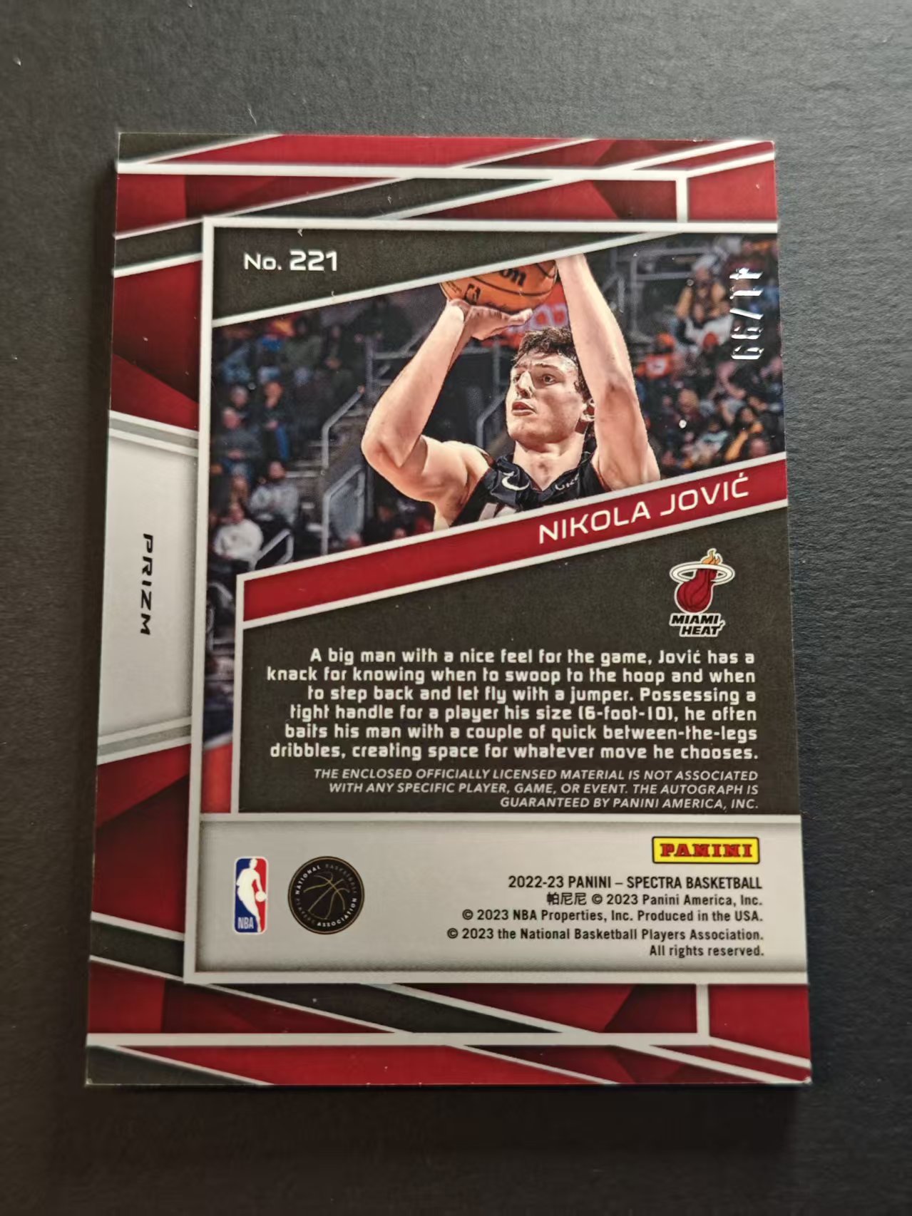 2022-23 Panini Spectra Nikola Jovic RC 光谱 约维奇 新秀 RJA 75编 球衣切割 卡签 签字 银折 BGN鉴真原封贴 热火 约基奇小老弟