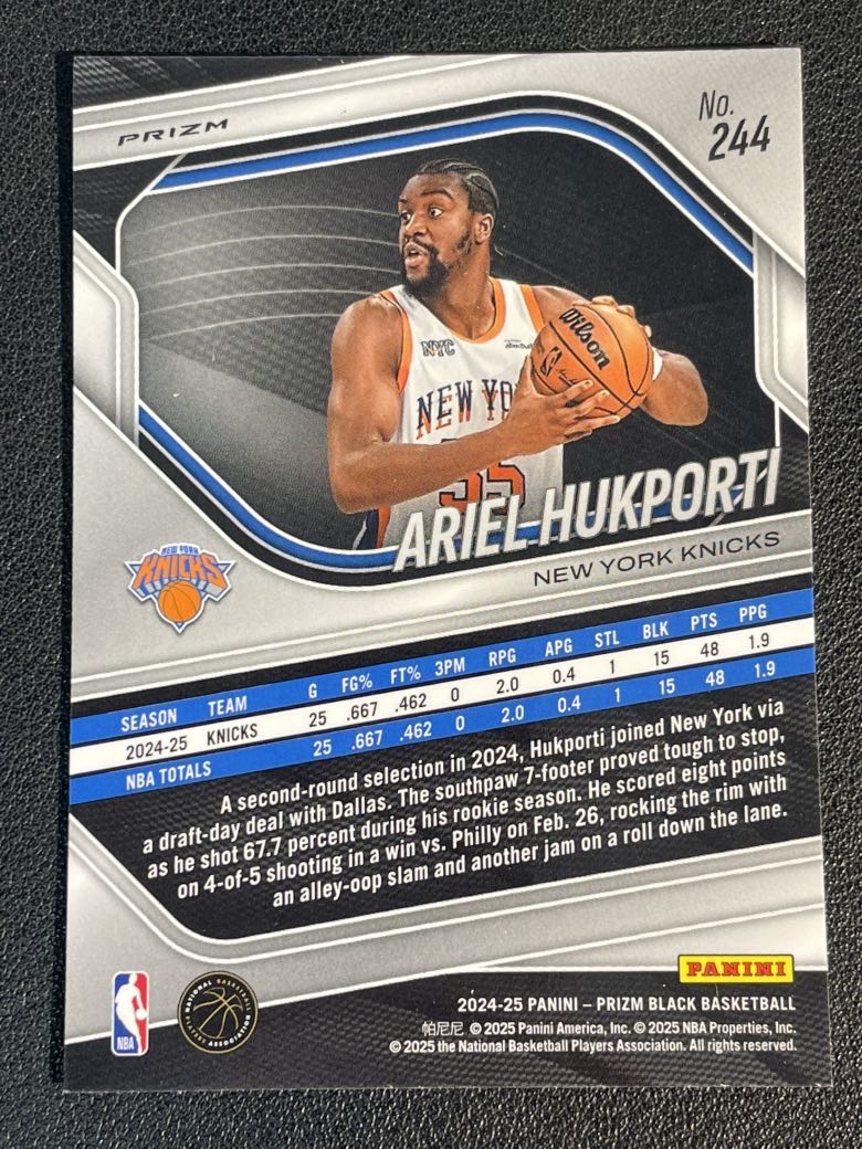 2024-25 Panini Prizm Black Ariel Hukporti RC 702 阿里尔 胡克波尔蒂 尼克斯 新秀 折射 银折 正银折 微瑕如图 卡品如图 尖叫代拍 pink