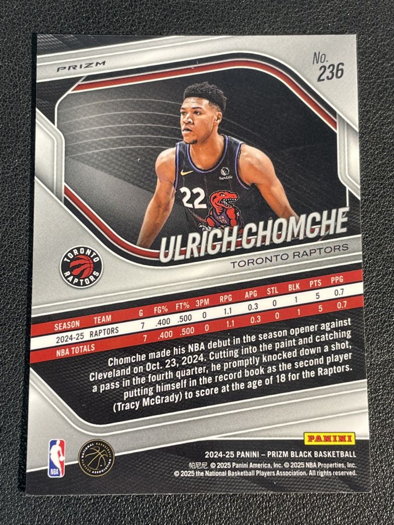 2024-25 Panini Prizm Black Ulrich Chomche RC 730 乌尔里希 乔姆切 猛龙 新秀 折射 红折 红波纹折 实卡精美 卡品如图 尖叫代拍 pink