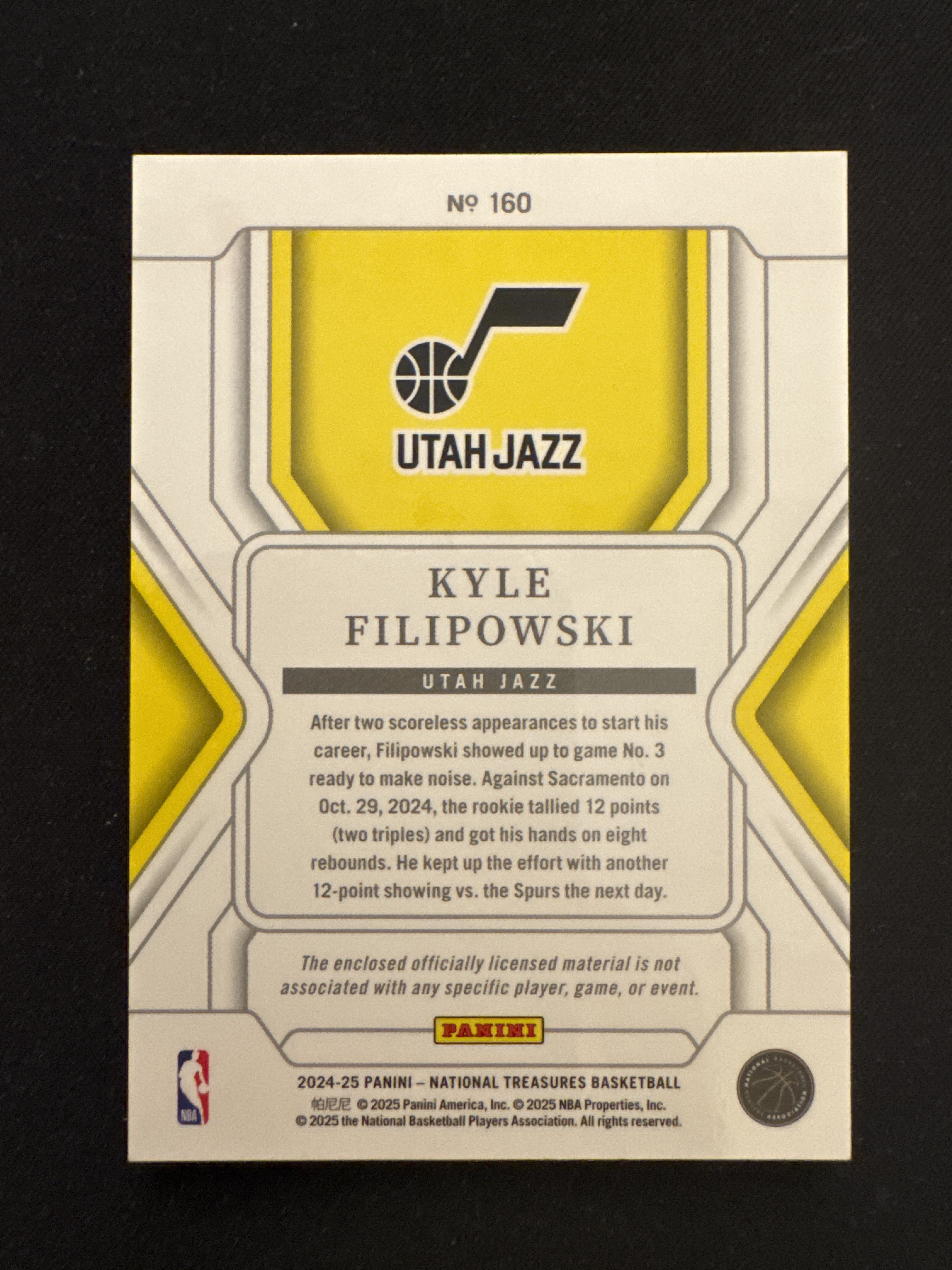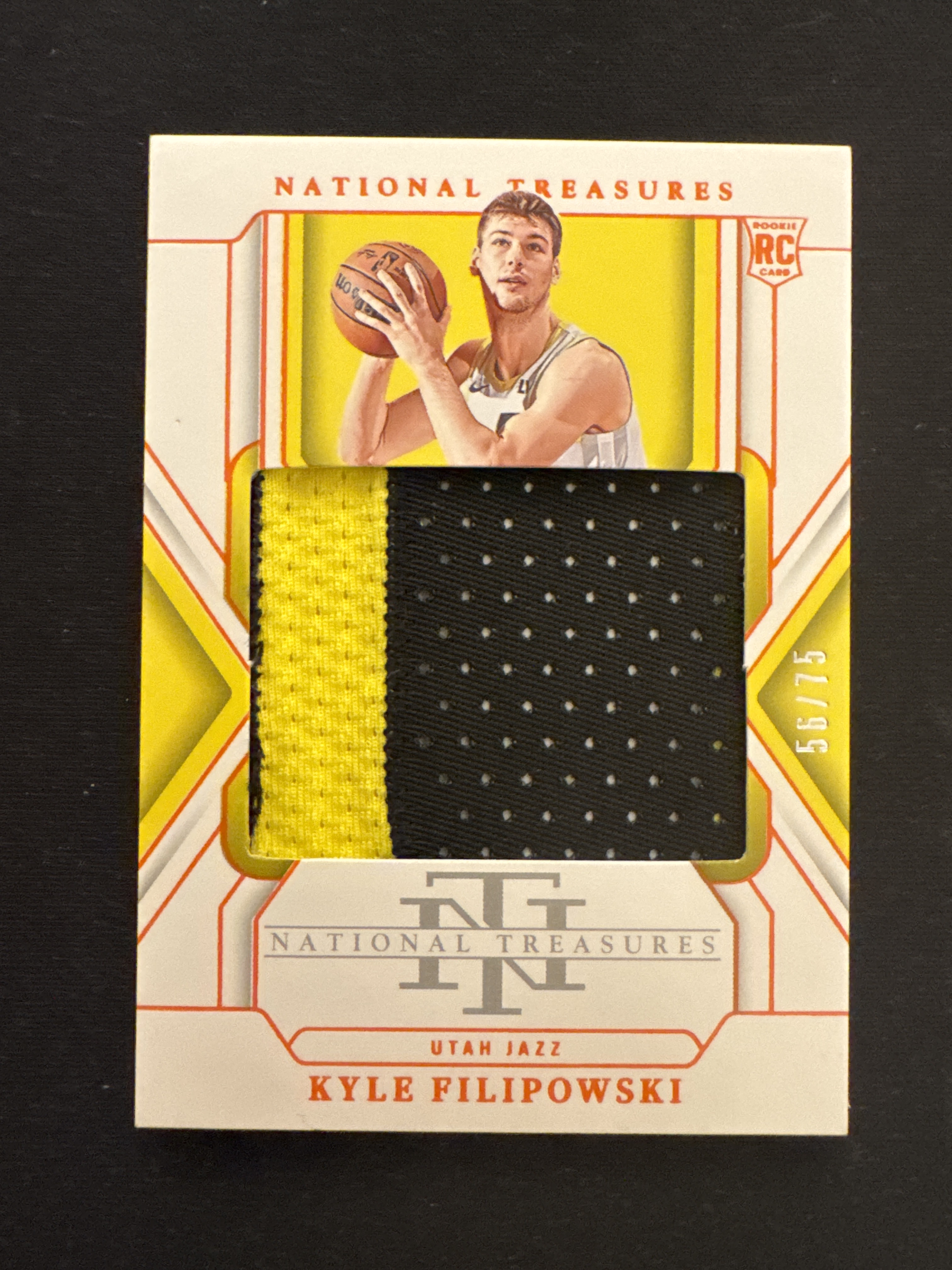 2024-25 Panini National Treasures Kyle Filipowski RC 国宝 爵士 新秀 凯尔 菲利波夫斯基 56/75编 橙平行 大窗Patch RP 微瑕如图