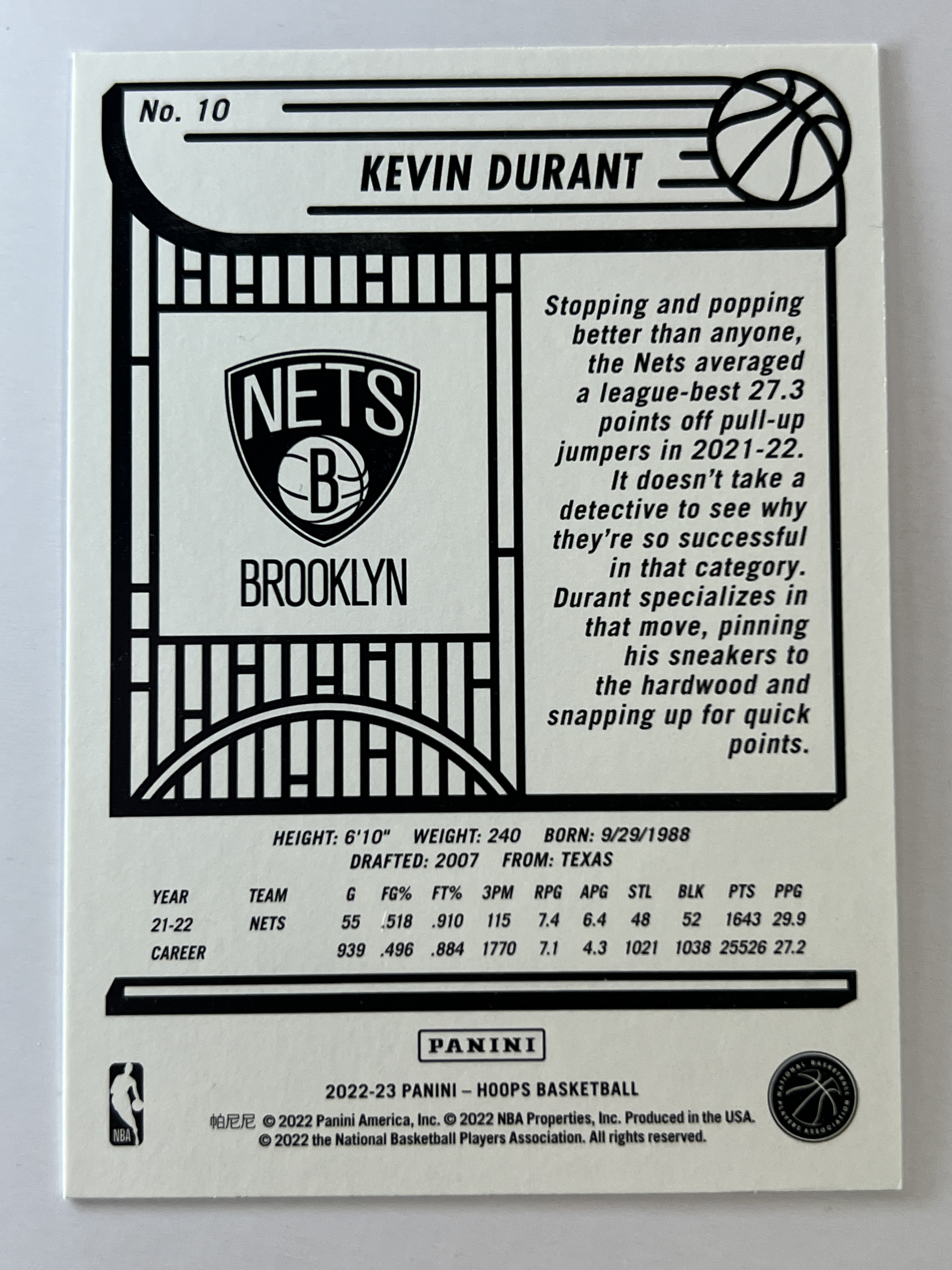 2022-23 Panini NBA Hoops Kevin Durant 凯文 杜兰特 死神 KD 篮网队 《 热门球星 收藏必备 》 实卡精美 #10