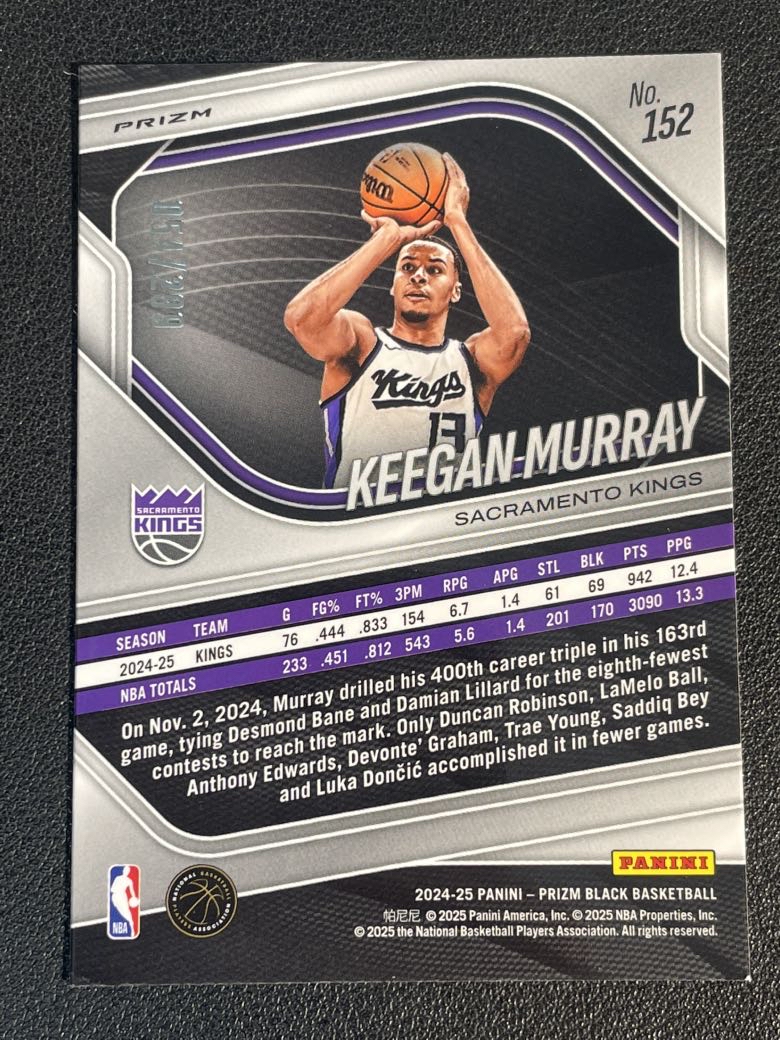 2024-25 Panini Prizm Black Keegan Murray 736 基根 穆雷 国王 折射 红折 299编 微瑕如图 卡品如图 尖叫代拍 pink