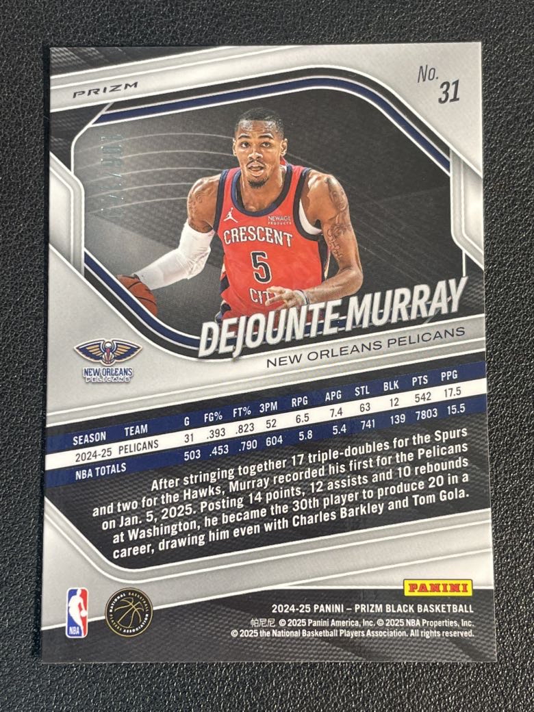 2024-25 Panini Prizm Black Dejounte Murray 761 德章泰 穆雷 鹈鹕 折射 紫折 紫碎冰折 149编 实卡精美 卡品如图 尖叫代拍 pink