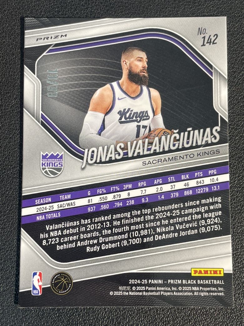 2024-25 Panini Prizm Black Jonas Valanciunas 765 约纳斯 瓦兰丘纳斯 国王 折射 紫折 99编 实卡精美 卡品如图 尖叫代拍 pink