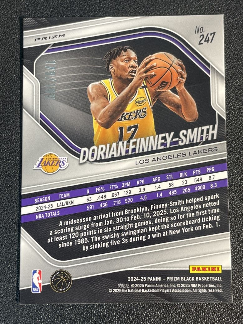 2024-25 Panini Prizm Black Dorian Finney-Smith 773 多利安 芬尼 史密斯 湖人 折射 蓝折 199编 实卡精美 卡品如图 尖叫代拍 pink