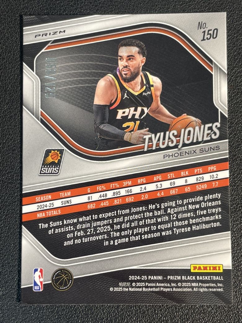 2024-25 Panini Prizm Black Tyus Jones 781 泰尔斯 琼斯 太阳 折射 蓝折 蓝碎冰折 125编 实卡精美 卡品如图 尖叫代拍 pink