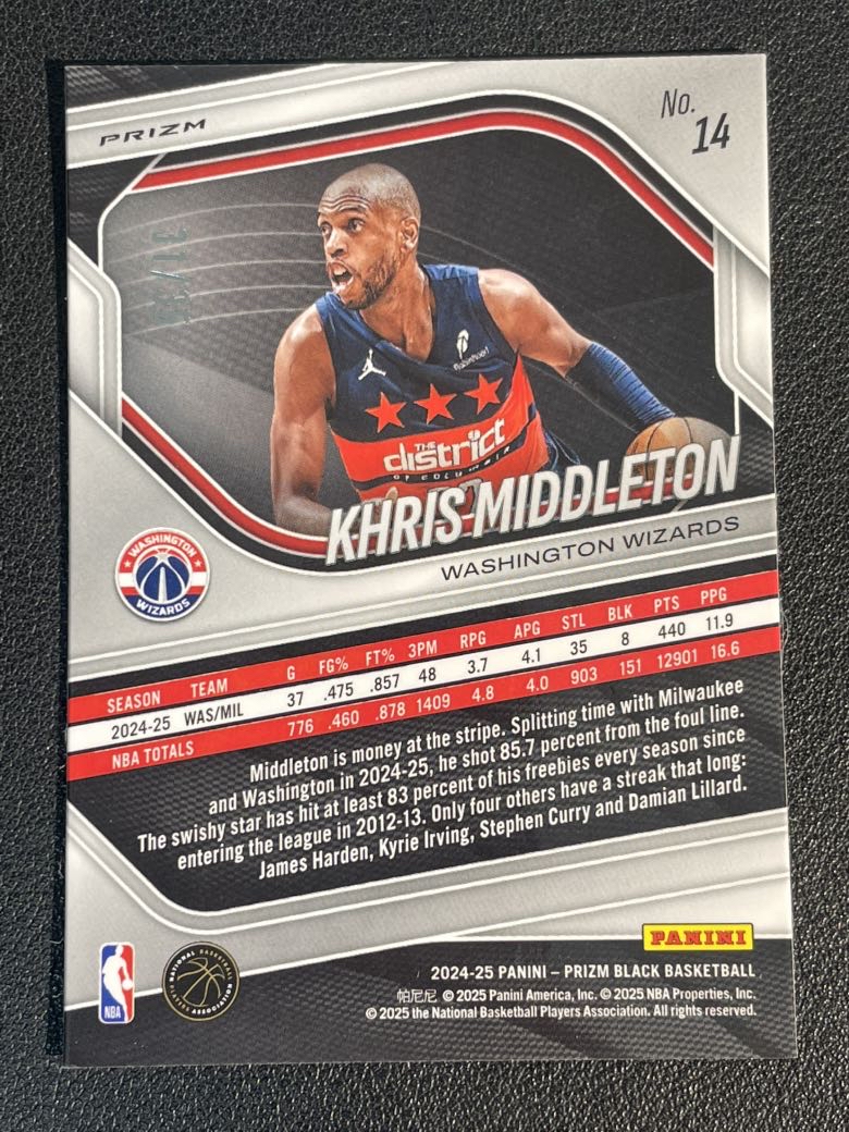 2024-25 Panini Prizm Black Khris Middleton 782 克里斯 米德尔顿 奇才 折射 蓝折 蓝shimmer折 35编 实卡精美 卡品如图 尖叫代拍 pink
