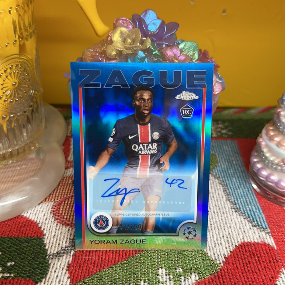 2024-25 Topps Chrome zague RC 〖大雄潮玩〗欧冠 TC 巴黎 拉约姆 扎格 新秀 签字 蓝熔岩折射 150编 限量 收藏必备 宋老板