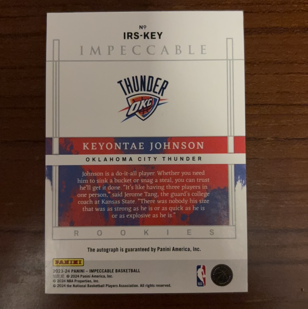 2023-24 Panini Impeccable Keyontae Johnson RC 【克里斯拍卖】小真金 雷霆队 基昂泰 约翰逊 新秀 RC 卡签 签字 签名 57/99编 99编