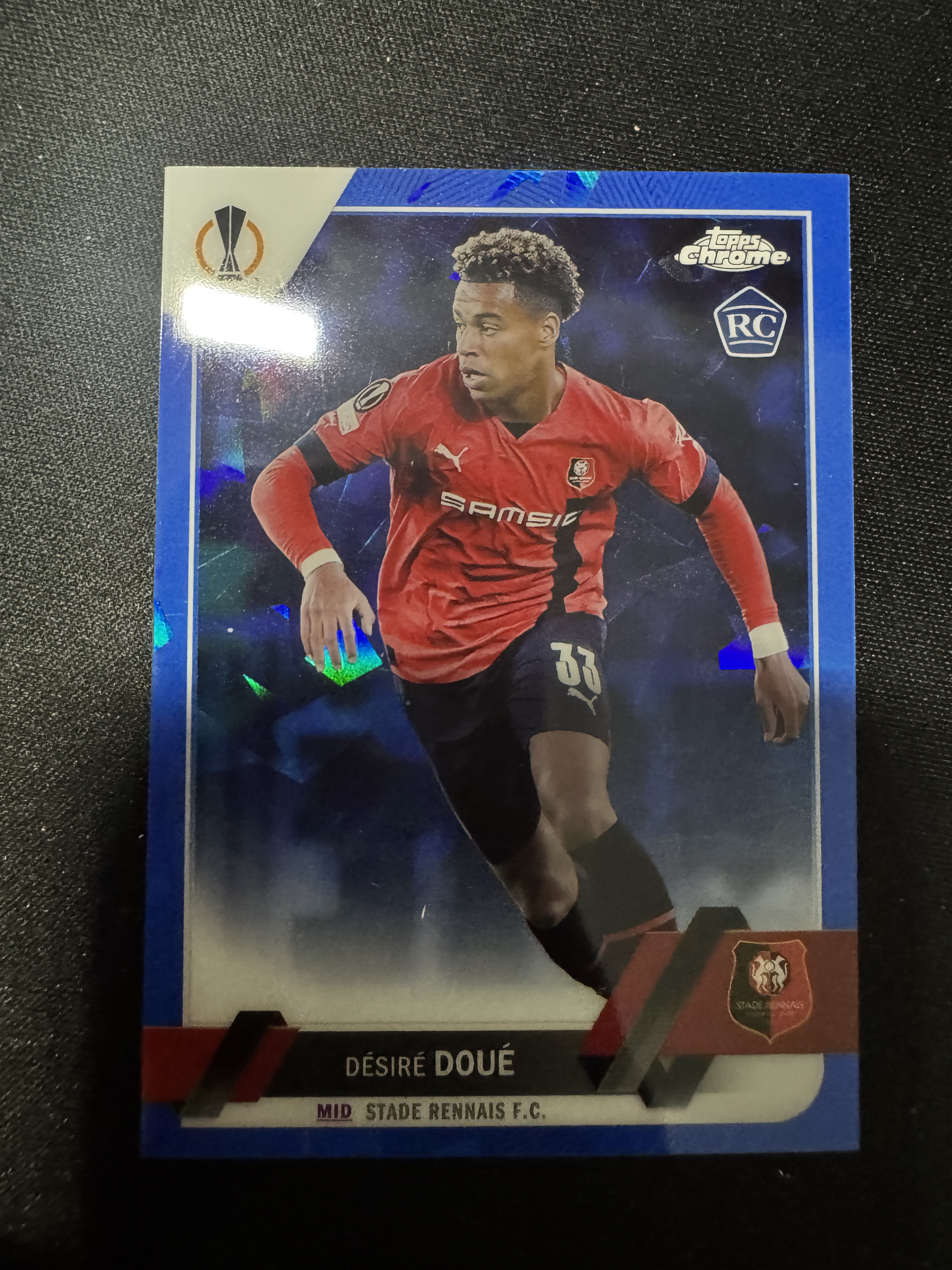 2022-23 Topps 欧冠蓝宝石 Désiré Doué RC 【XQ拍卖】新秀 徳西雷 杜埃 法国 雷恩 潜力新星 蓝碎冰折 收藏