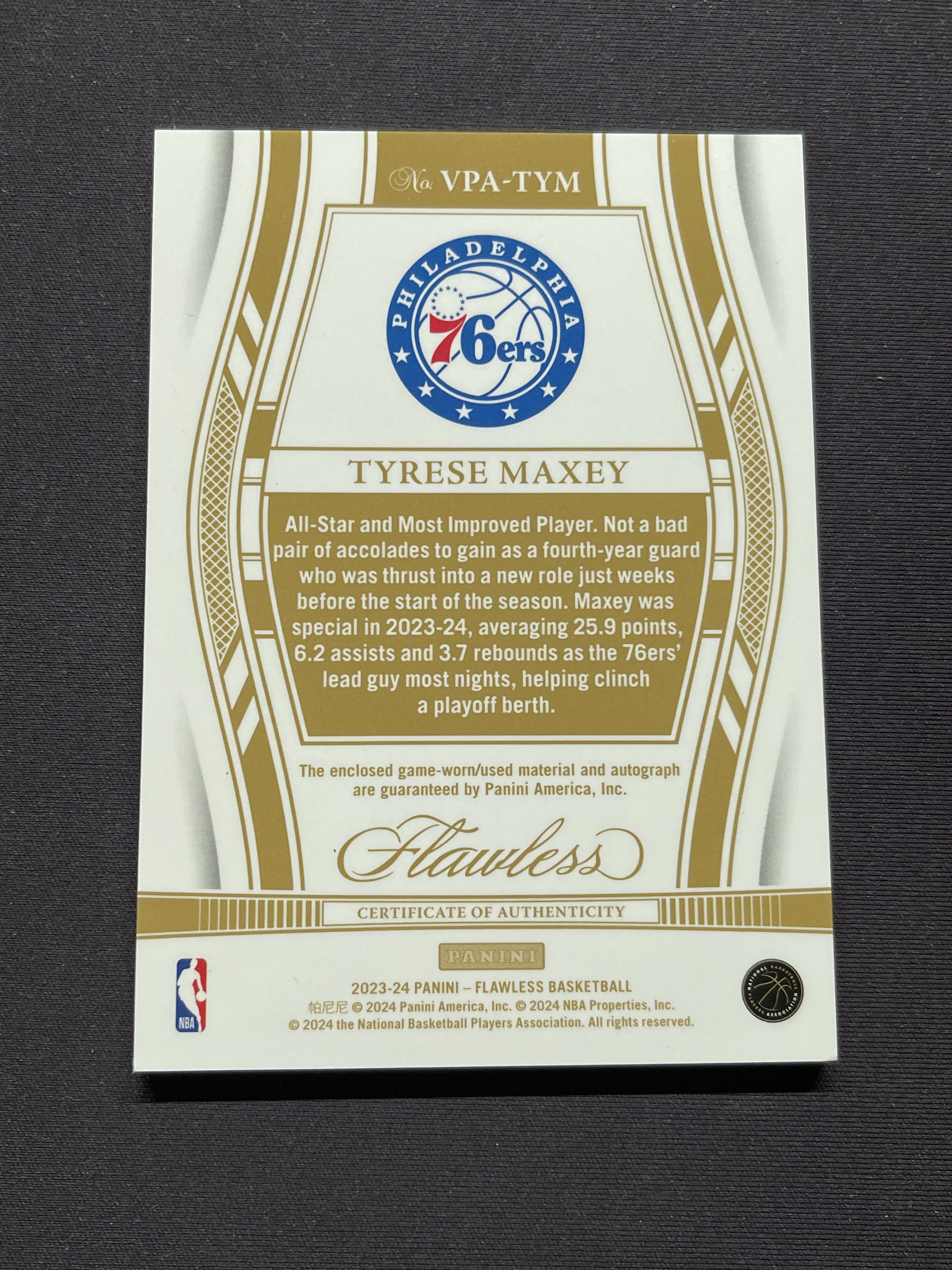 2023-24 Panini Flawless Tyrese Maxey 手提 76人 马克西 patch 签字卡签 PA VPA 01/10编 首编 金版  不累计「老夫子」280