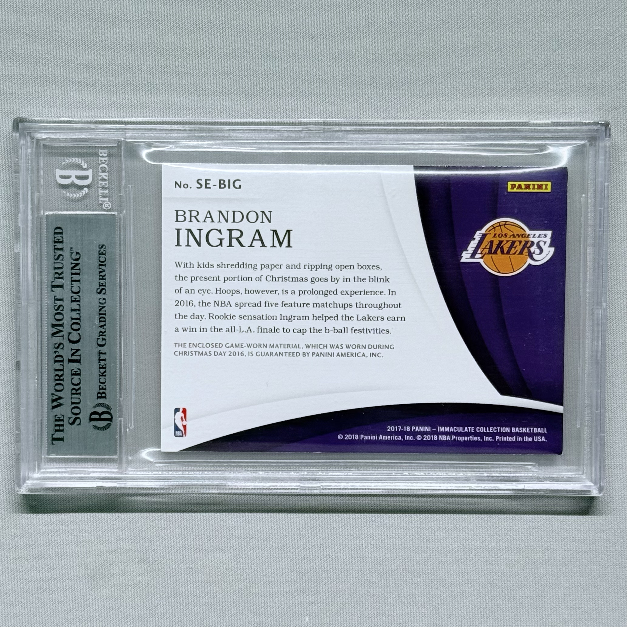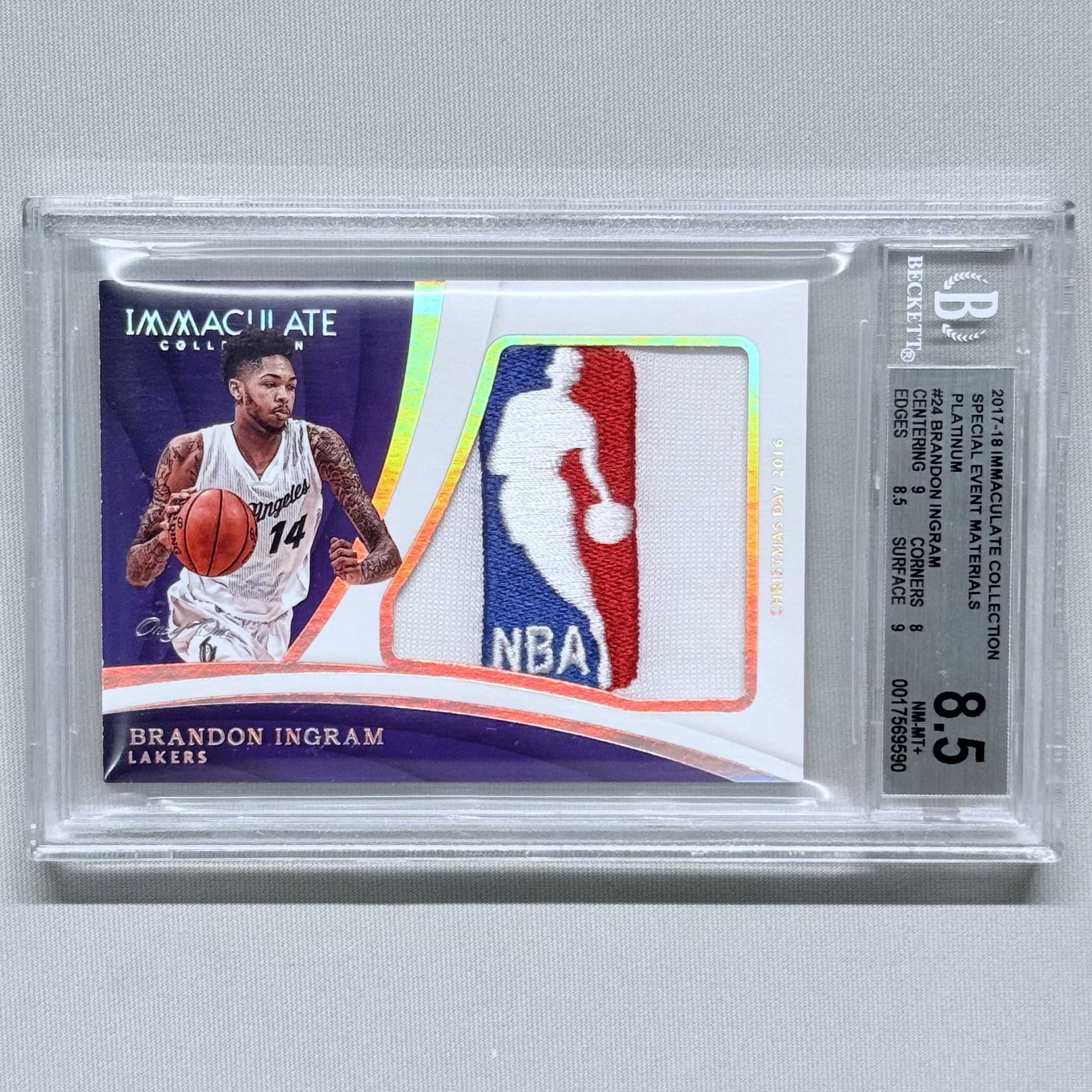 2017-18 Panini Immaculate Brandon Ingram 英格拉姆 莺歌 湖人 1/1 1编 1of1 白金闪 新秀年的圣诞大战logoman Patch 特殊切割BGS8.5