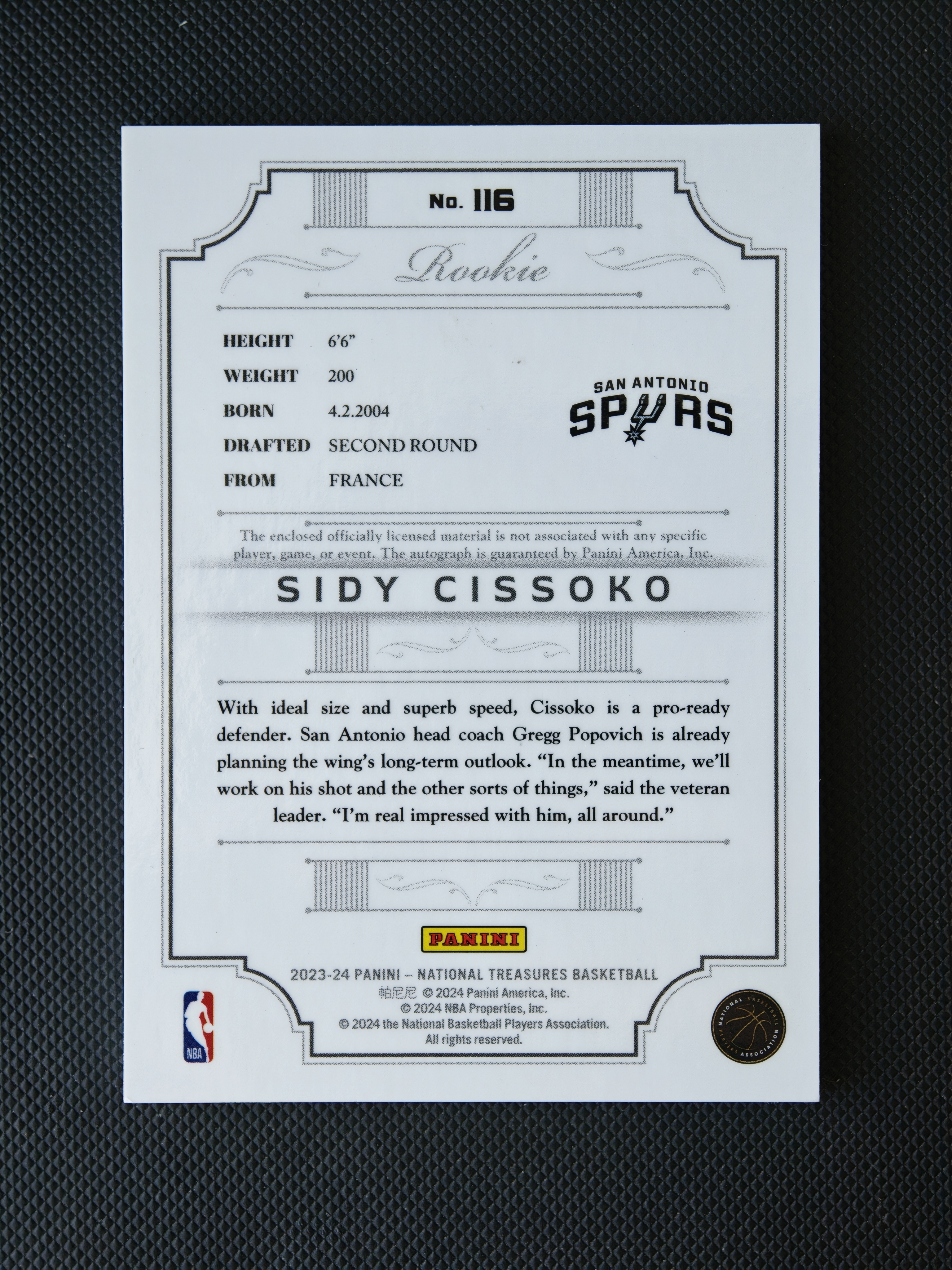 2023-24 Panini National Treasures Sidy Cissoko RC 开拓者马刺队新秀 西迪 西索科 复古10编国宝正RPA 亲笔镜面卡签暴力切割 杨瀚森带刀侍卫 细节如图