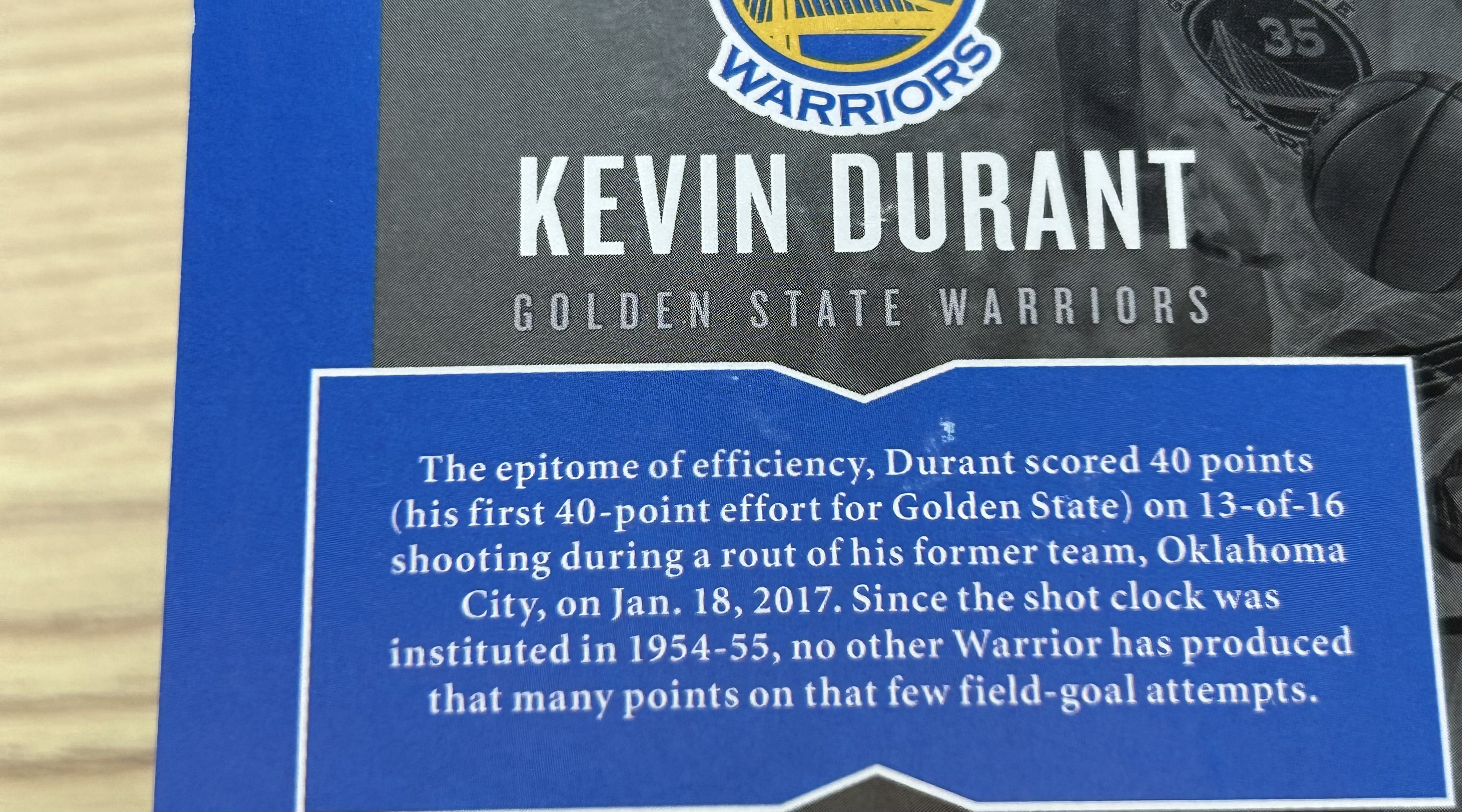 【二月枫-承接代卖】2016-17 帕尼尼 Preferred 小书 勇士 凯文 杜兰特 KD 签字 剪影签 大窗球衣切割 卡签 35编 同背 背号编 低编 微瑕 超音速雷霆篮网太阳火箭 #超级幸运