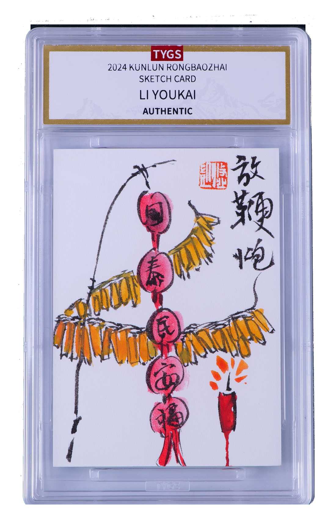 2025中版昆仑 荣名为宝 荣宝斋 350 周年纪念收藏手绘卡 现代大师:李悠凯 作品: 放鞭炮1/1编 天元鉴真 收藏必备 实卡精美