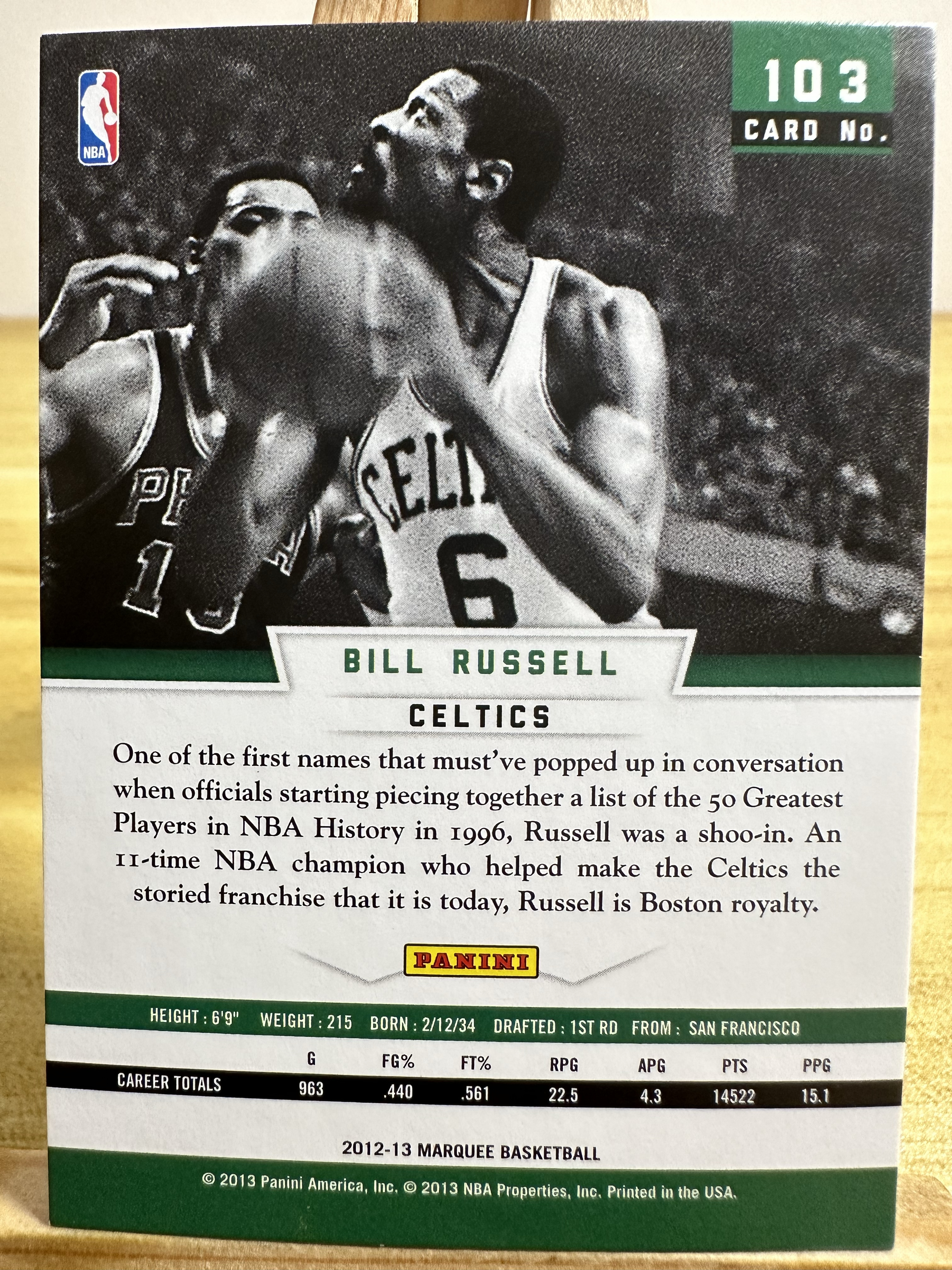 2012-13 Panini Marquee Bill Russell 凯尔特人 比尔 拉塞尔 马奎 base 指环王 瑕疵如图 e197