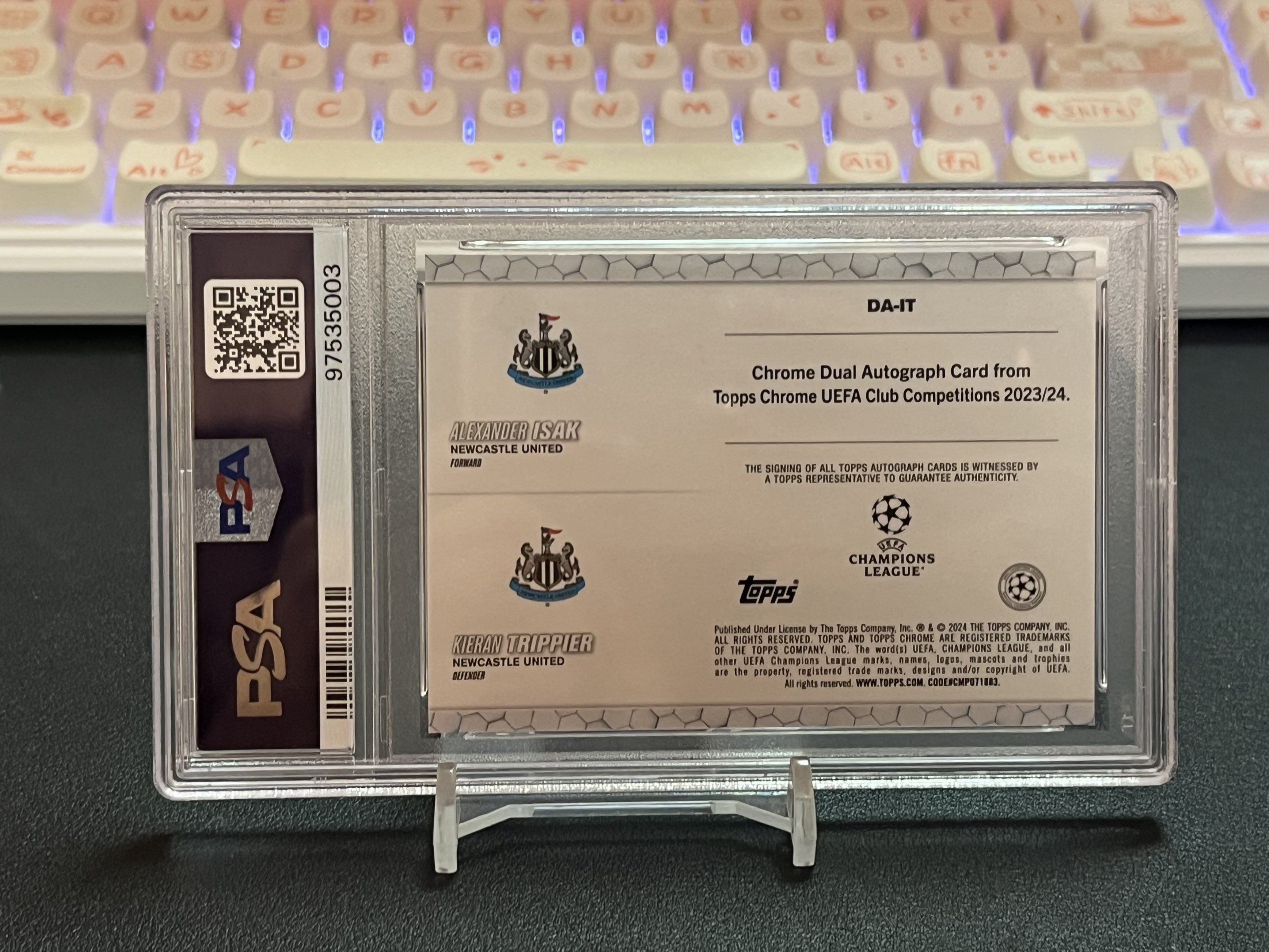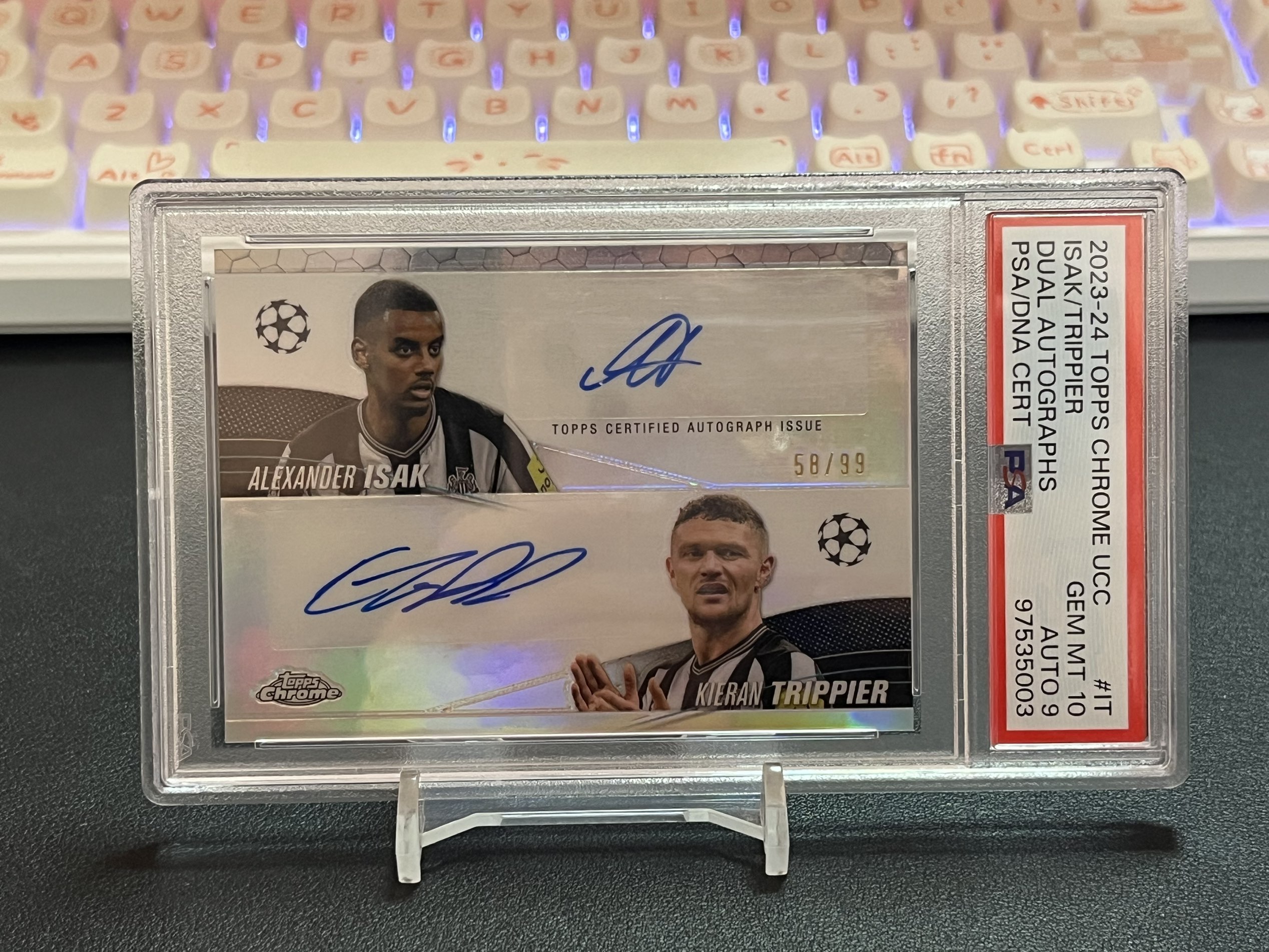 【浩行拍卖 截标预付82%】2023-24 topps chrome ucc 欧冠 纽卡斯尔联 亚历山大 伊萨克 基兰 特里皮尔 银折 折射 签字 双人签 58/99编 psa10 评级 签字9分 POP1「大发589」1010D03祺