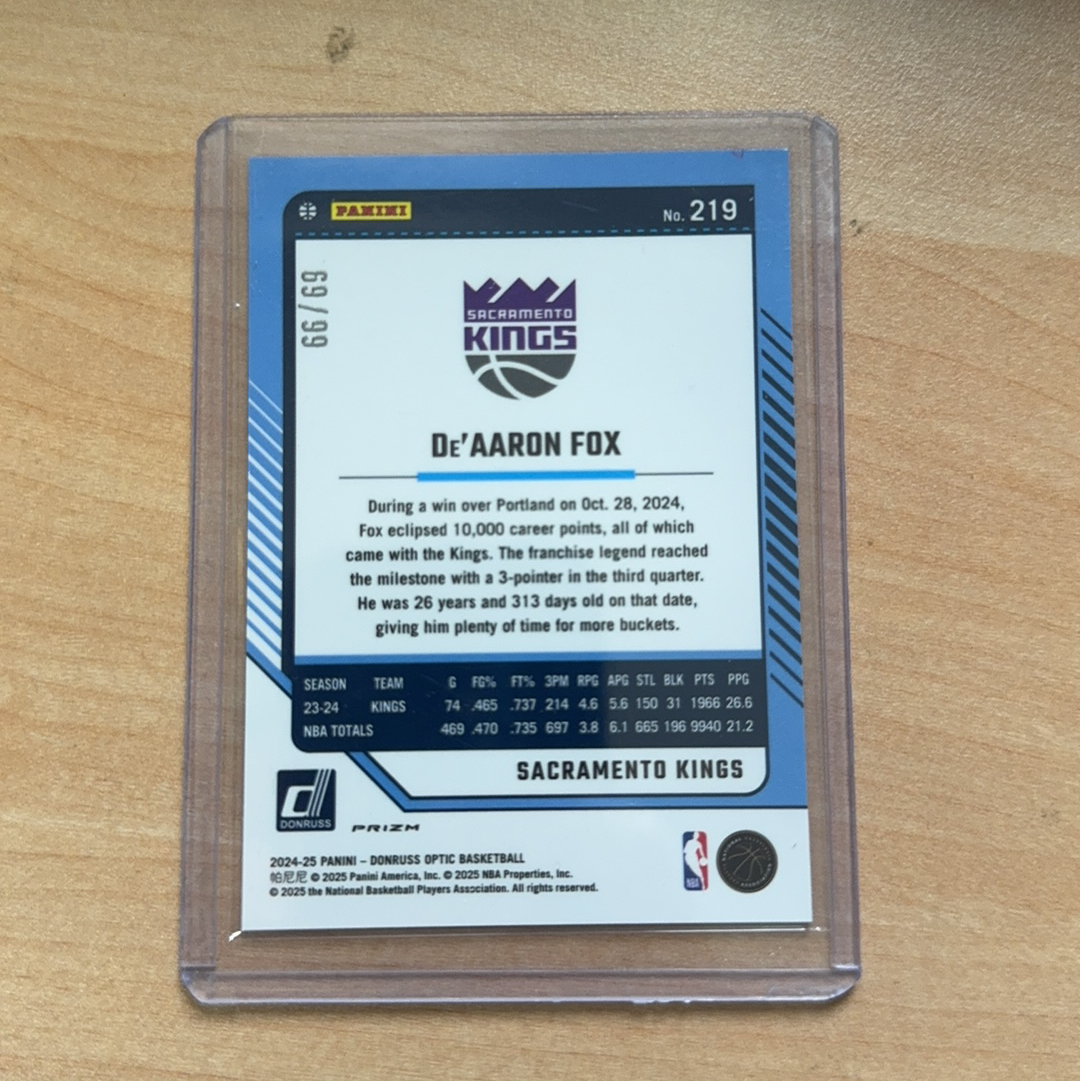 2024-25 Panini Optic De'Aaron Fox 【接代卖 回款超快】国王 福克斯 小狐狸 圈圈折 69/99 卡品如图