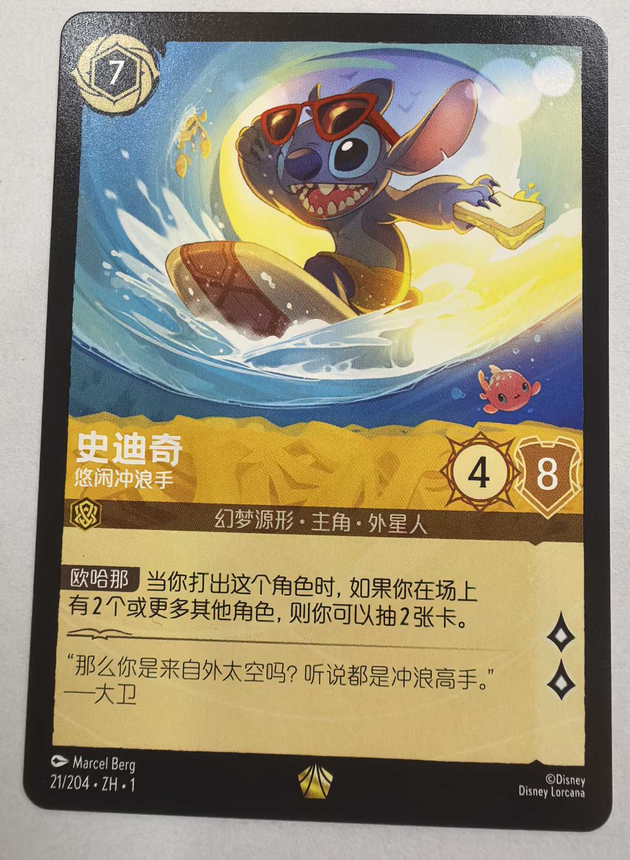 2024 LORCANA 泼墨第一章 史迪奇 悠闲冲浪手 chs 传奇卡位