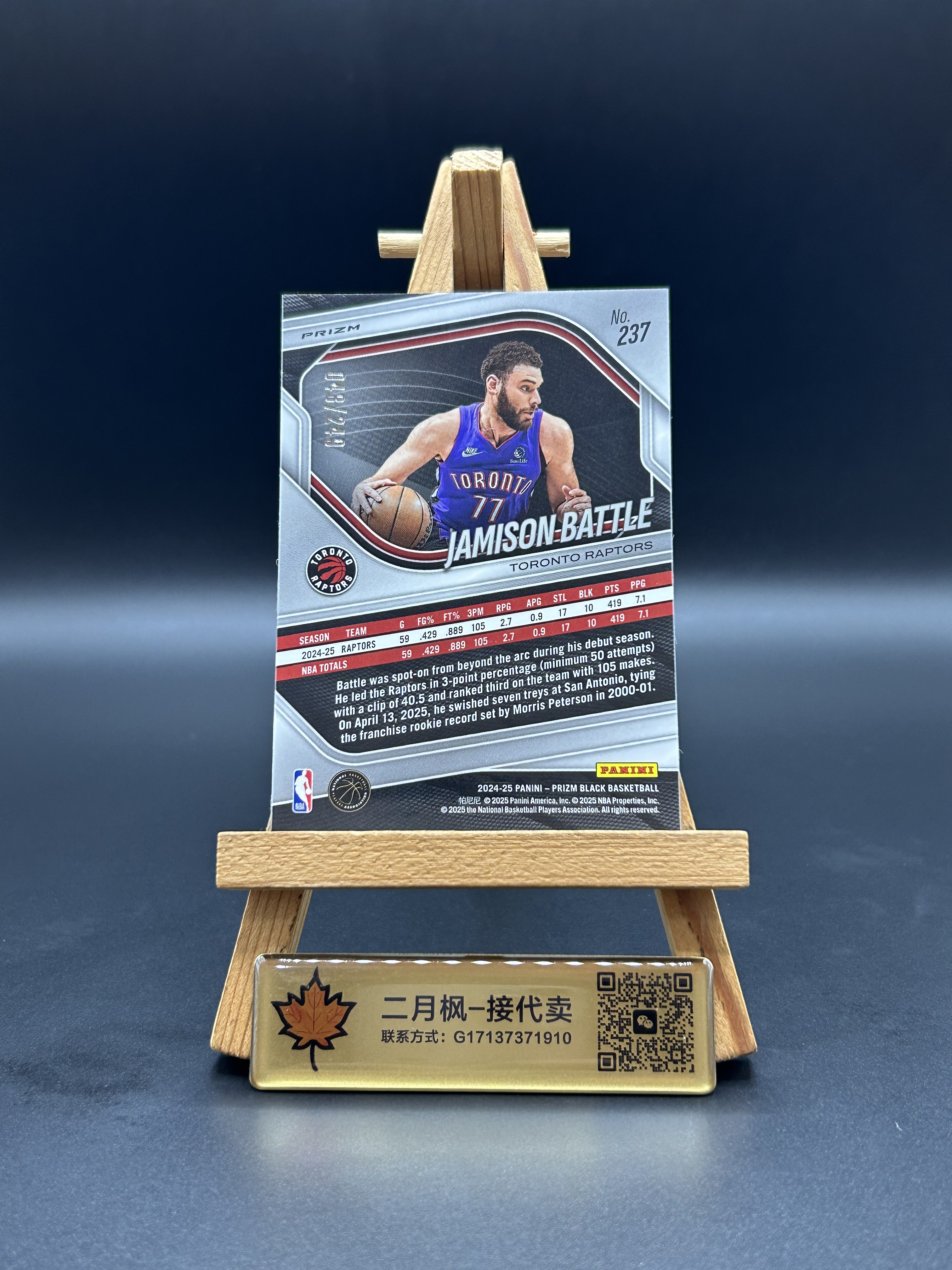【二月枫-承接代卖】2024-25 帕尼尼 Prizm Black Pz系列 猛龙 Jamison Battle 贾米森 巴特尔 新秀RC 折射 瀑布折 249编 实卡精美 专收凑套必备 #付总