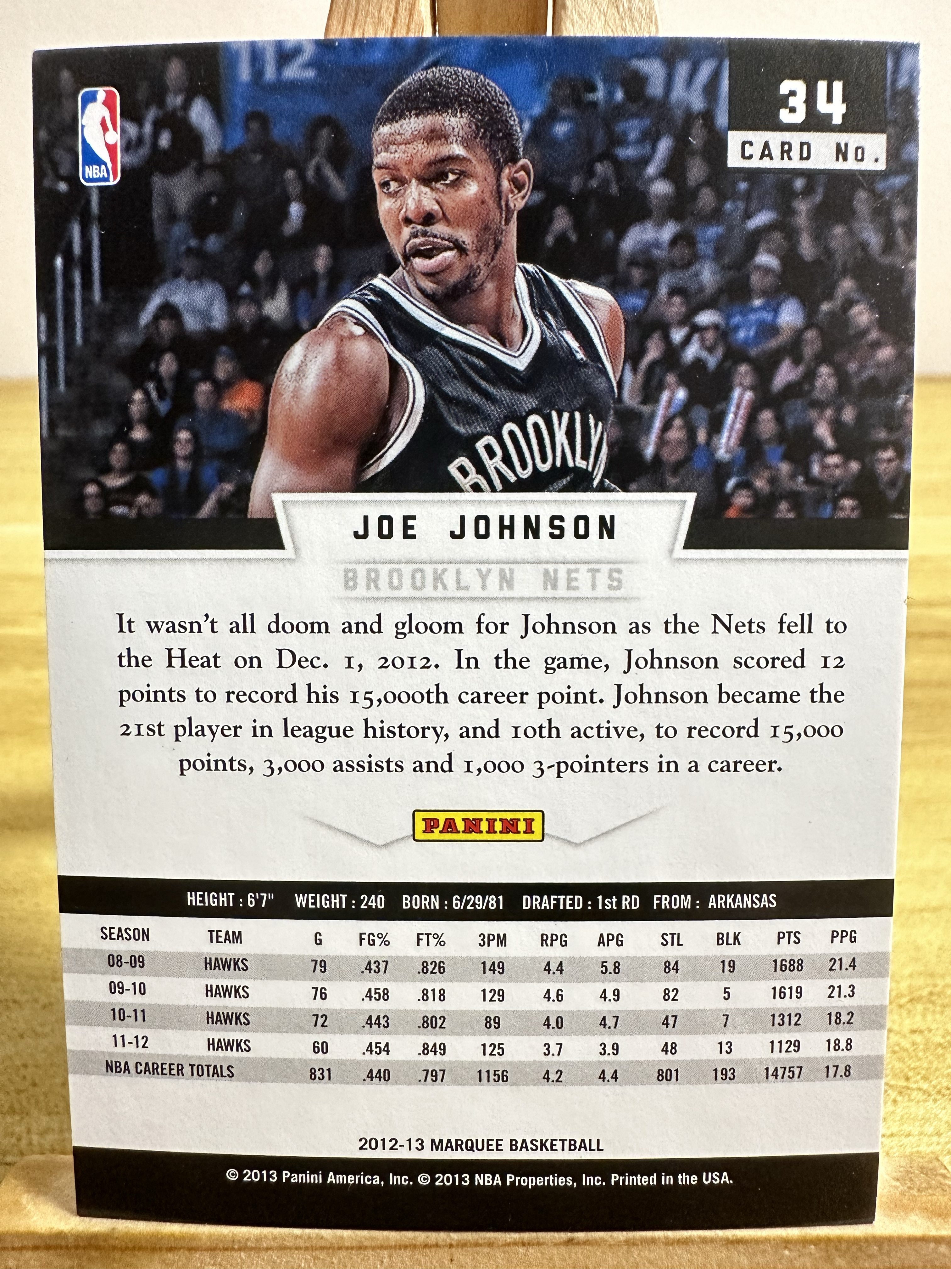 2012-13 Panini Marquee Joe Johnson 篮网 乔 约翰逊 马奎 base e81